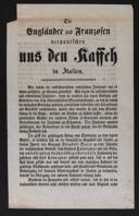 Der Banus von Croatien und der ungarische Kriegsminister. Die schwarzen Blattern in Palmanuova ...[Wien] : Druck und Verlag bei Leopold Grund, [s.a. 1848]Die Engländer und Franzosen verpantschen uns den Kaffeh in Italien