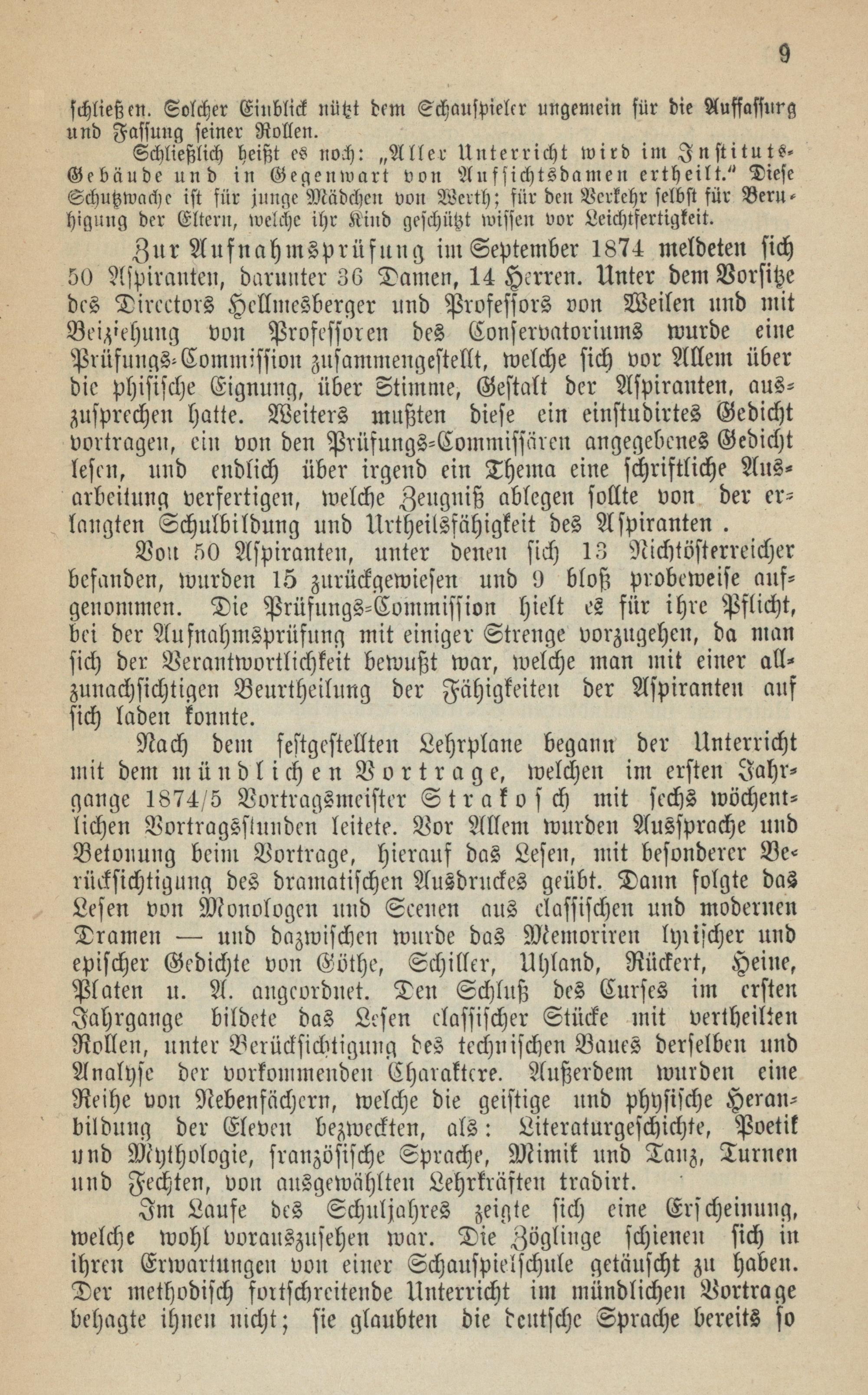 Die Schauspielschule des Wiener Conservatoriums 1874 - 1876 / von G. v. G.