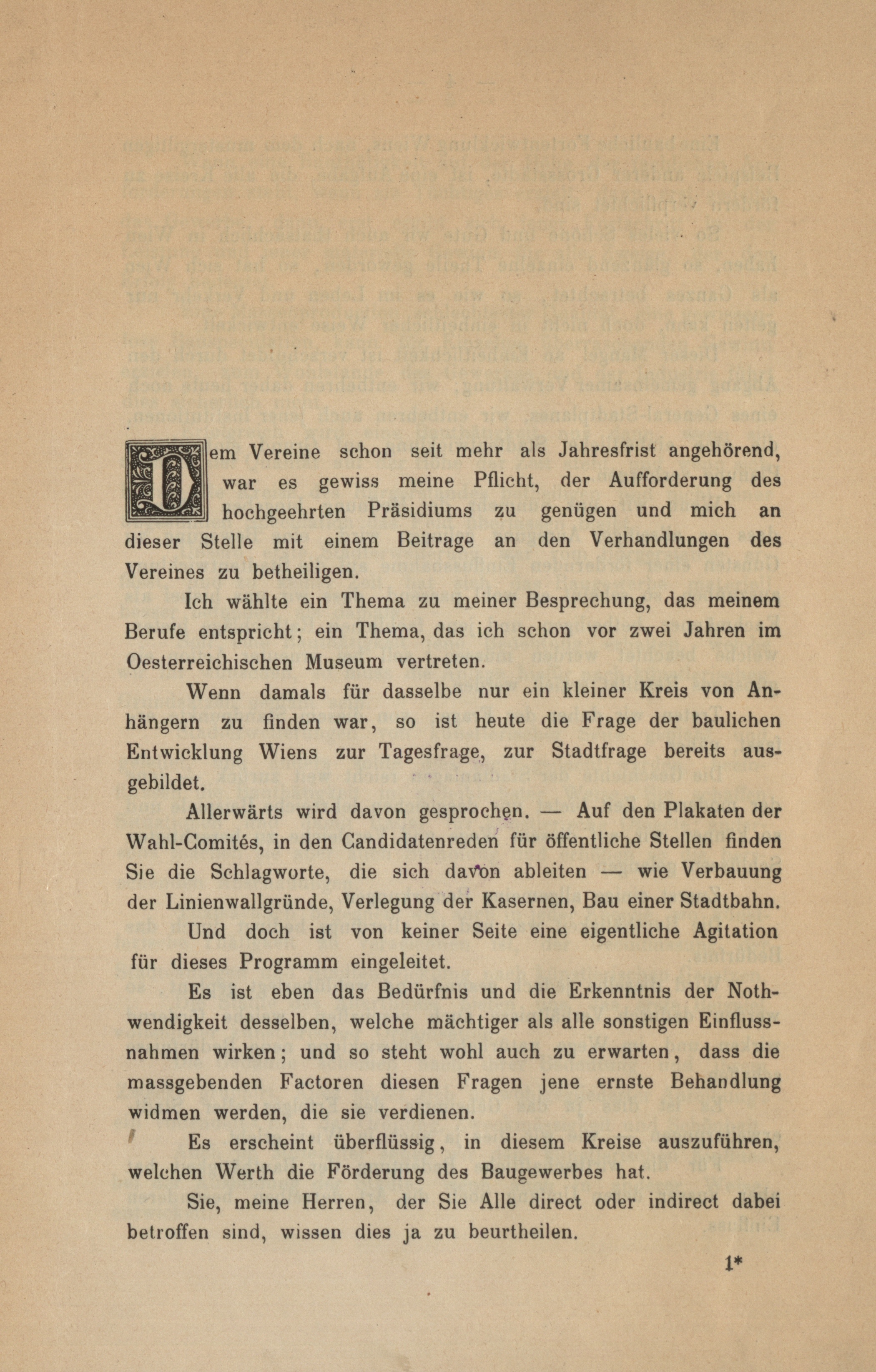 Die bauliche Entwicklung Wien's : Vortrag, gehalten März 1886 im Niederösterreichischen Gewerbevereine / von Franz v. Neumann jun.