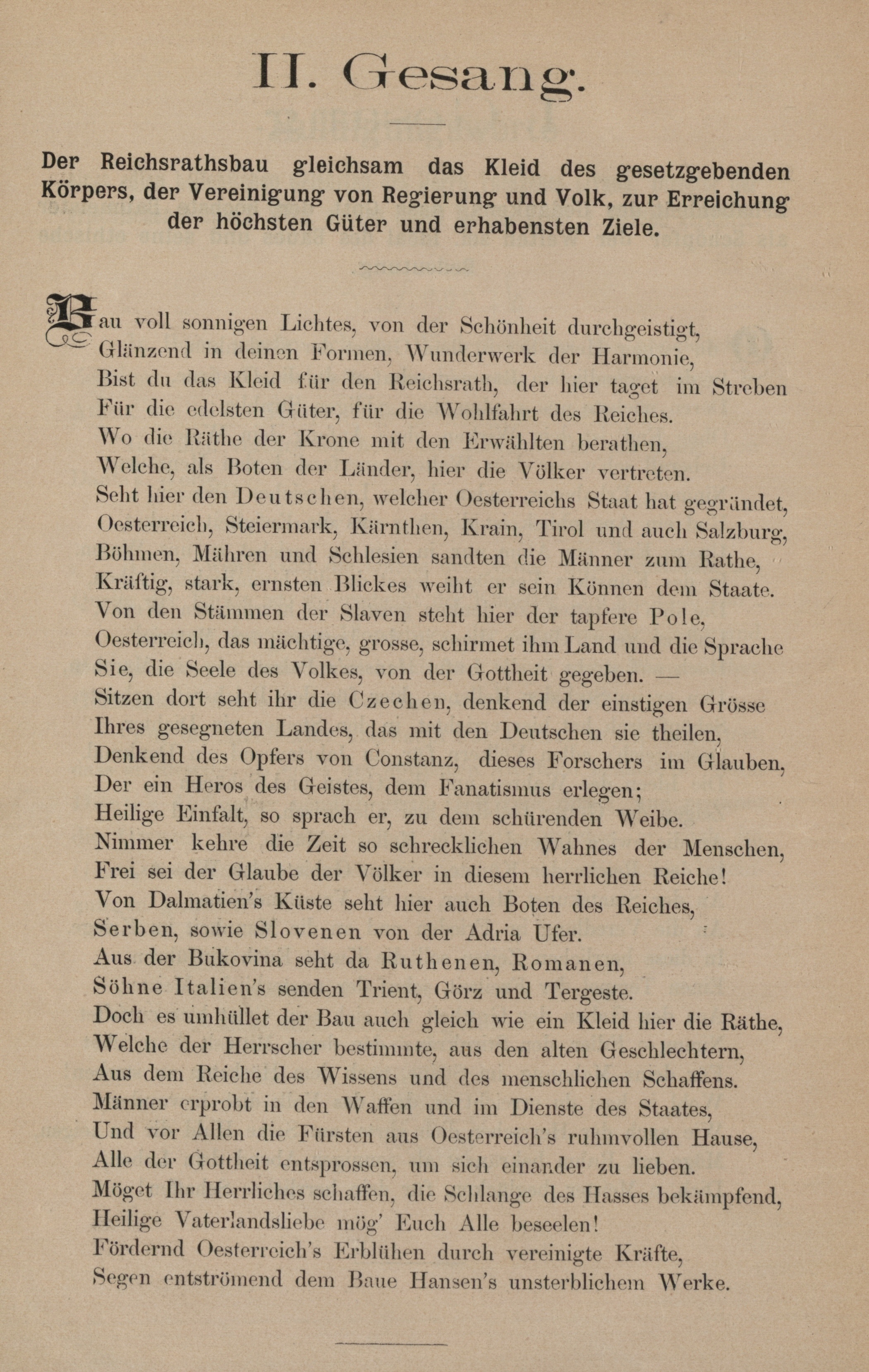 Eine Dichtung auf den Reichsraths-Bau : mit eines edlen Hellenen Huldigungsgruss dem Herrn Theophil Freih. v. Hansen geistigen Schöpfer des Baues in Verehrung gewidmet / von Anton Bachmaier