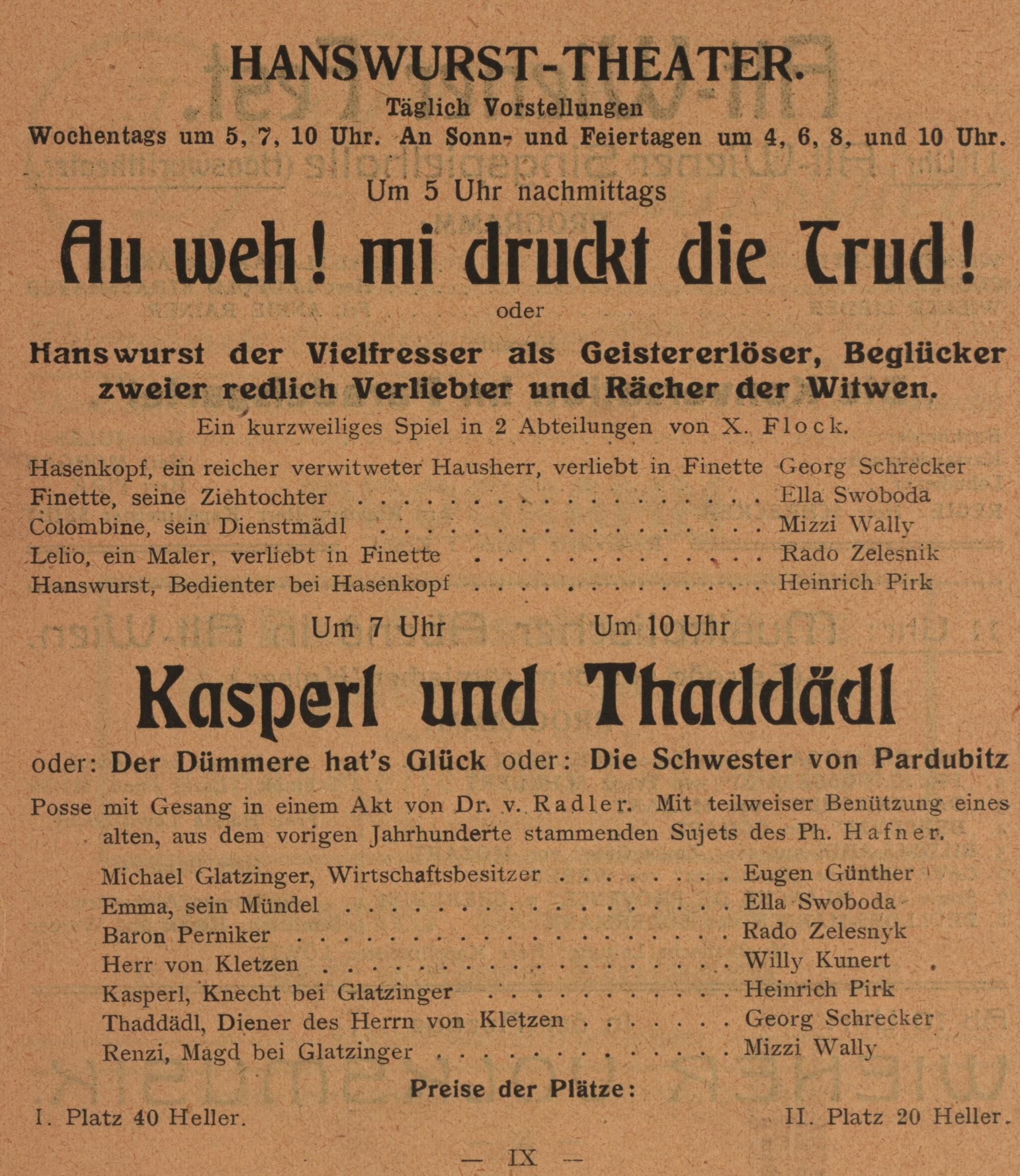 Kaisergarten : Alt-Wien 1814 ; Jahrhundertfeier des Wiener Kongresses ; [Alt Wien Kongress 1814 Programm] ; [Saison 1914]