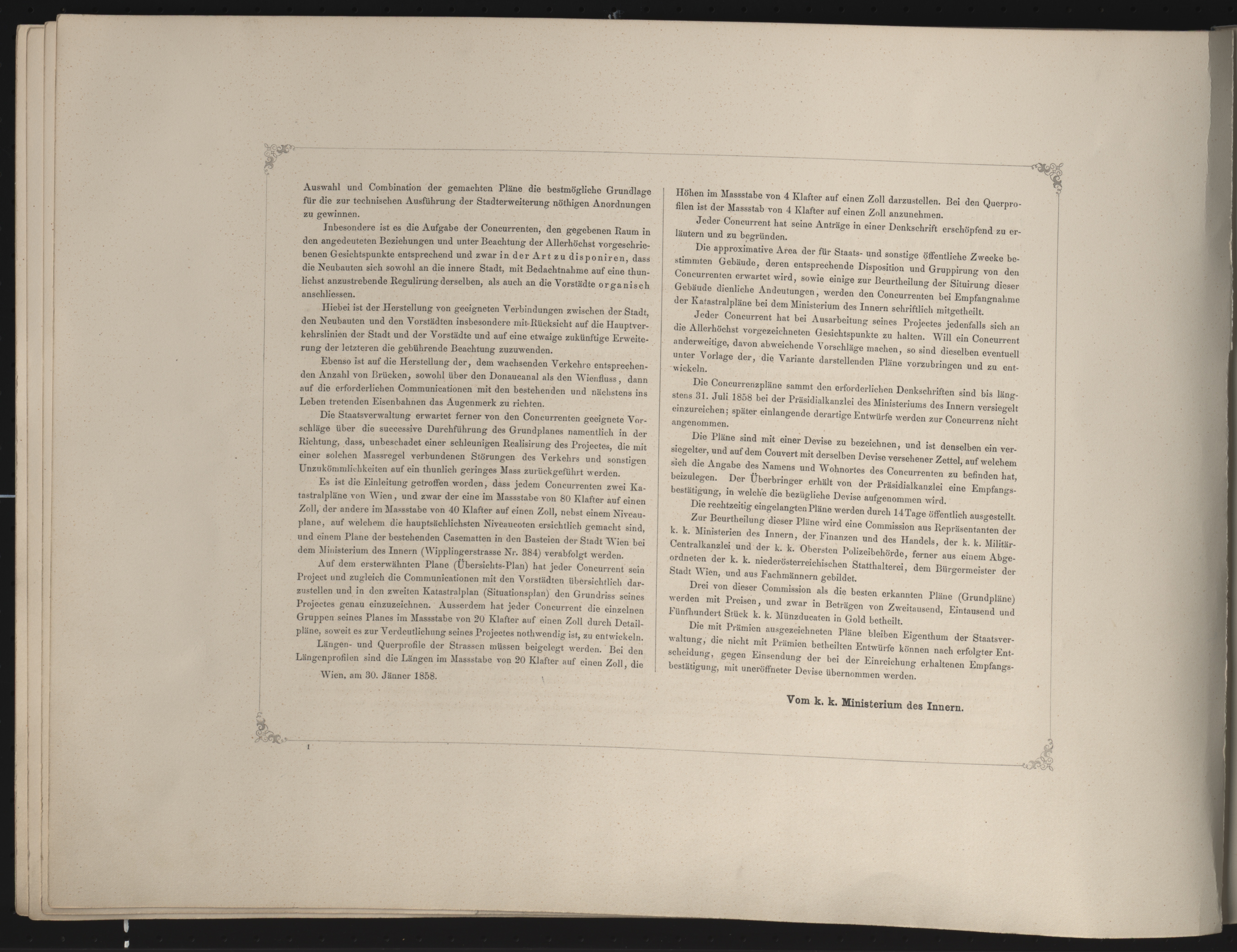Die preisgekrönten Entwürfe zur Erweiterung der Inneren Stadt Wien : mit sieben in der kaiserlich-königlichen Hof- und Staatdruckerei in Farbendruck ausgeführten Plänen und einem erläuternden Texte / von R. v. E.