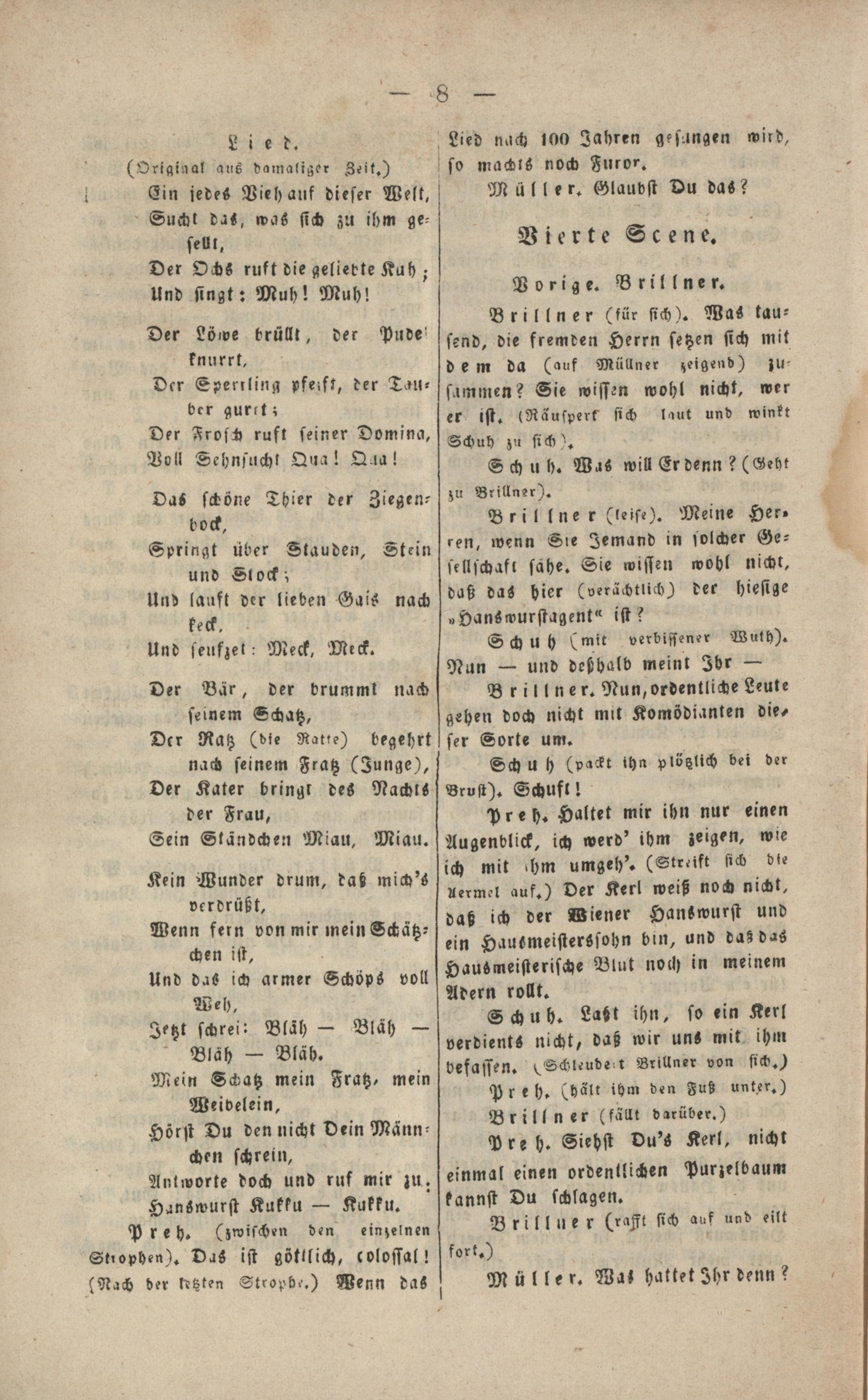 Der letzte Hanswurst : Zeitgemälde mit Gesang in 2 Akten / von Friedrich Kaiser ; Musik vom Kapellmeister Carl Binder