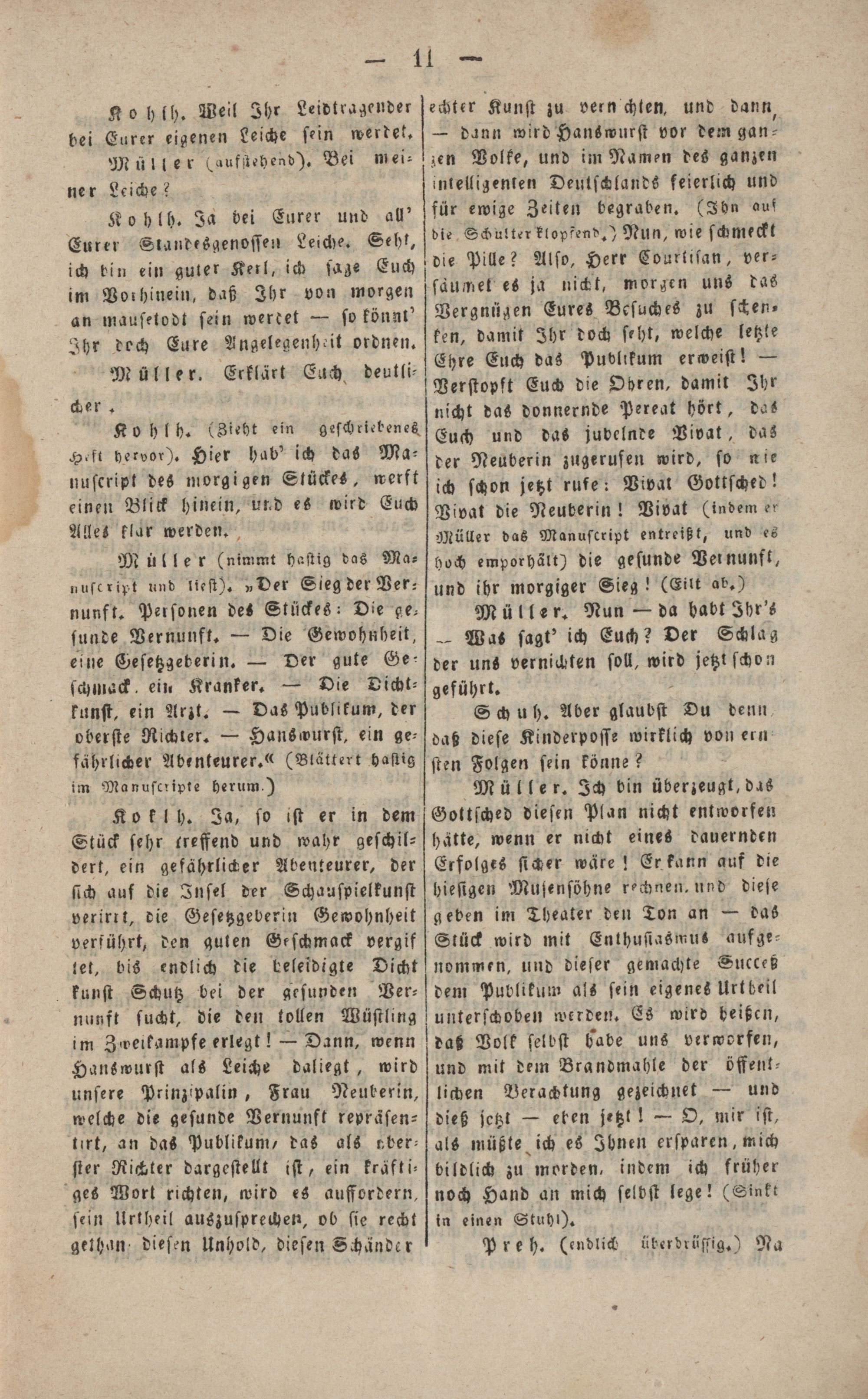 Der letzte Hanswurst : Zeitgemälde mit Gesang in 2 Akten / von Friedrich Kaiser ; Musik vom Kapellmeister Carl Binder