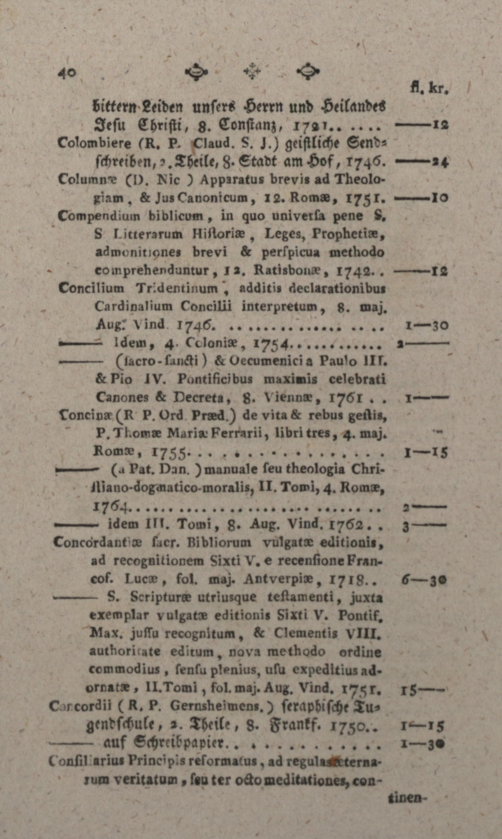 Catalogus Librorum Theologicorum. oder Verzeichniß derjenigen Theologischen Bücher, welche bey Johann Thomas Edlen von Trattnern, K. K. Hofbuchdruckern und Buchhändlern, in dessen Handlungen zu Wien, Prag und Innsbruck um beygesetzte sehr billige Preise zu haben sind
