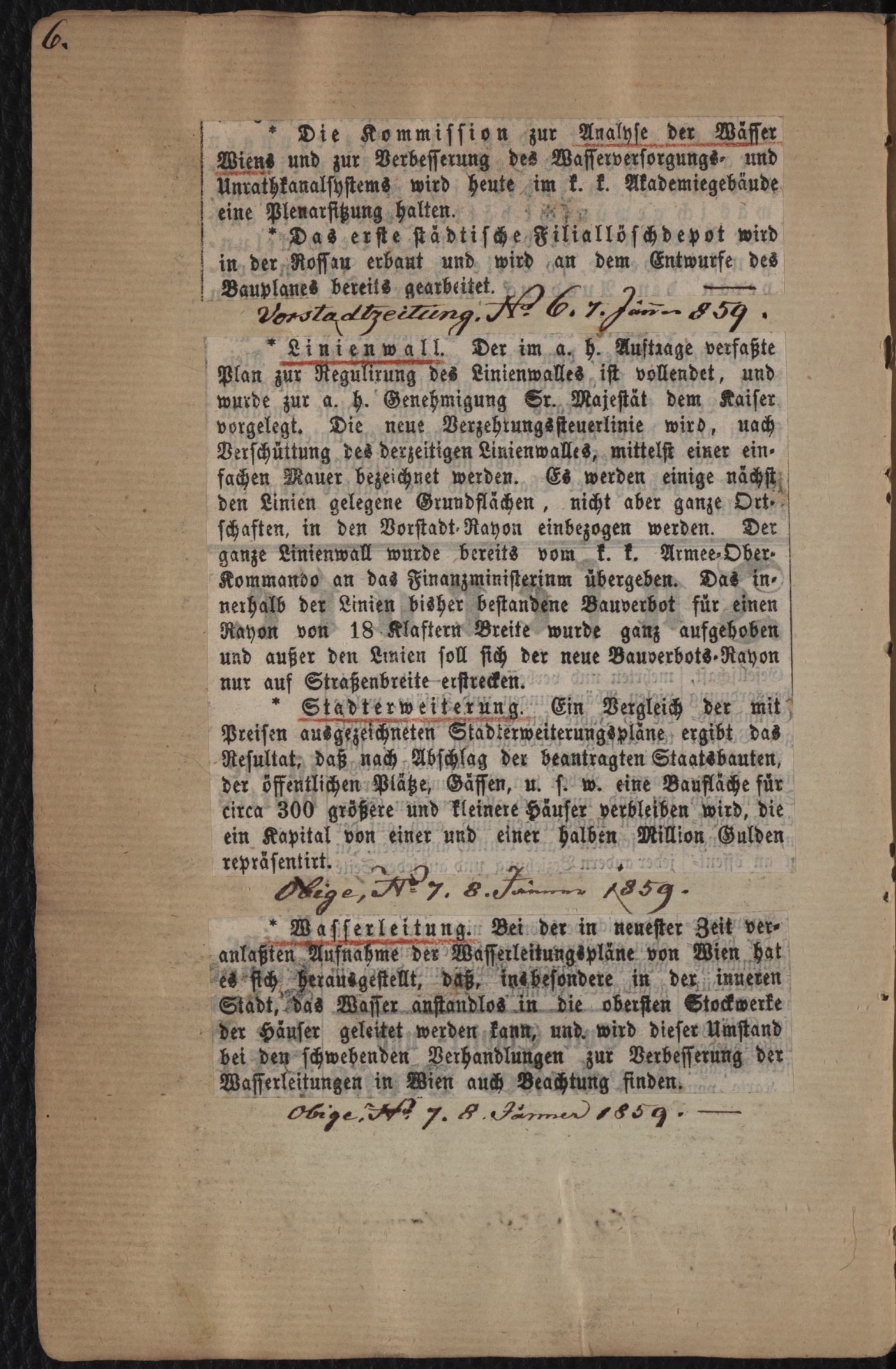 1: [Zeitungsausschnitte die Wiener Stadterweiterung betreffend] : [vom 29. Dezember 1857 bis 18. Mai 1864]
