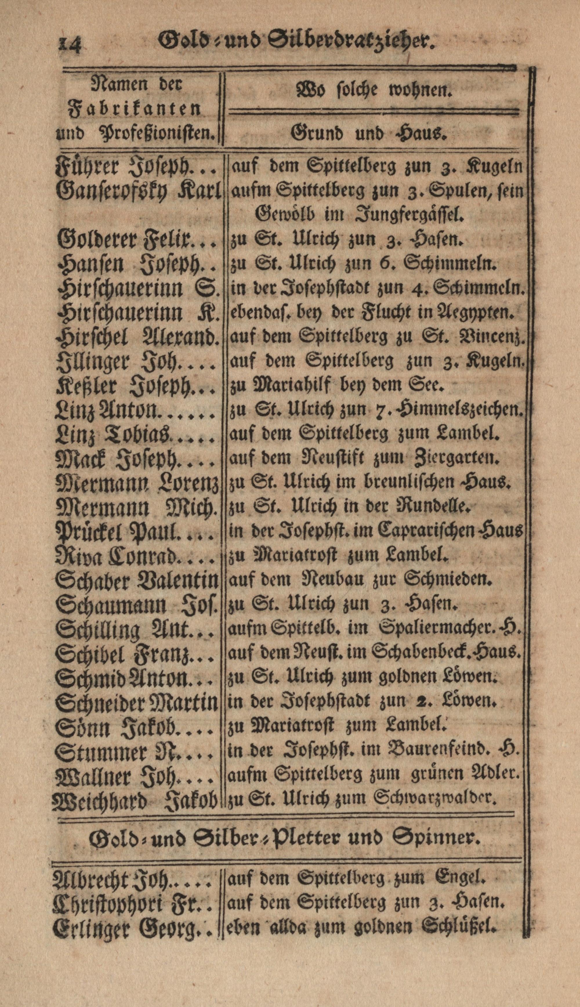 Oesterreichisches Mercantill-Schema, oder Verzeichniß aller Künstler, Manufakturisten, Fabrikanten, und Profeßionisten, so hauptsächlich in das Mercantille oder auf dem Kauf arbeiten, wie auch mit Anzeigung deren Tauf- und Zunamen, Ort, Grund, Gassen, Haus und Schilder, wie solche mit Anfang des 1766. Jahres befindlich waren : nebst allen allhier in Wien befindlichen Niederlaagsverwandten, sammt Kauf- und Handelsleuten