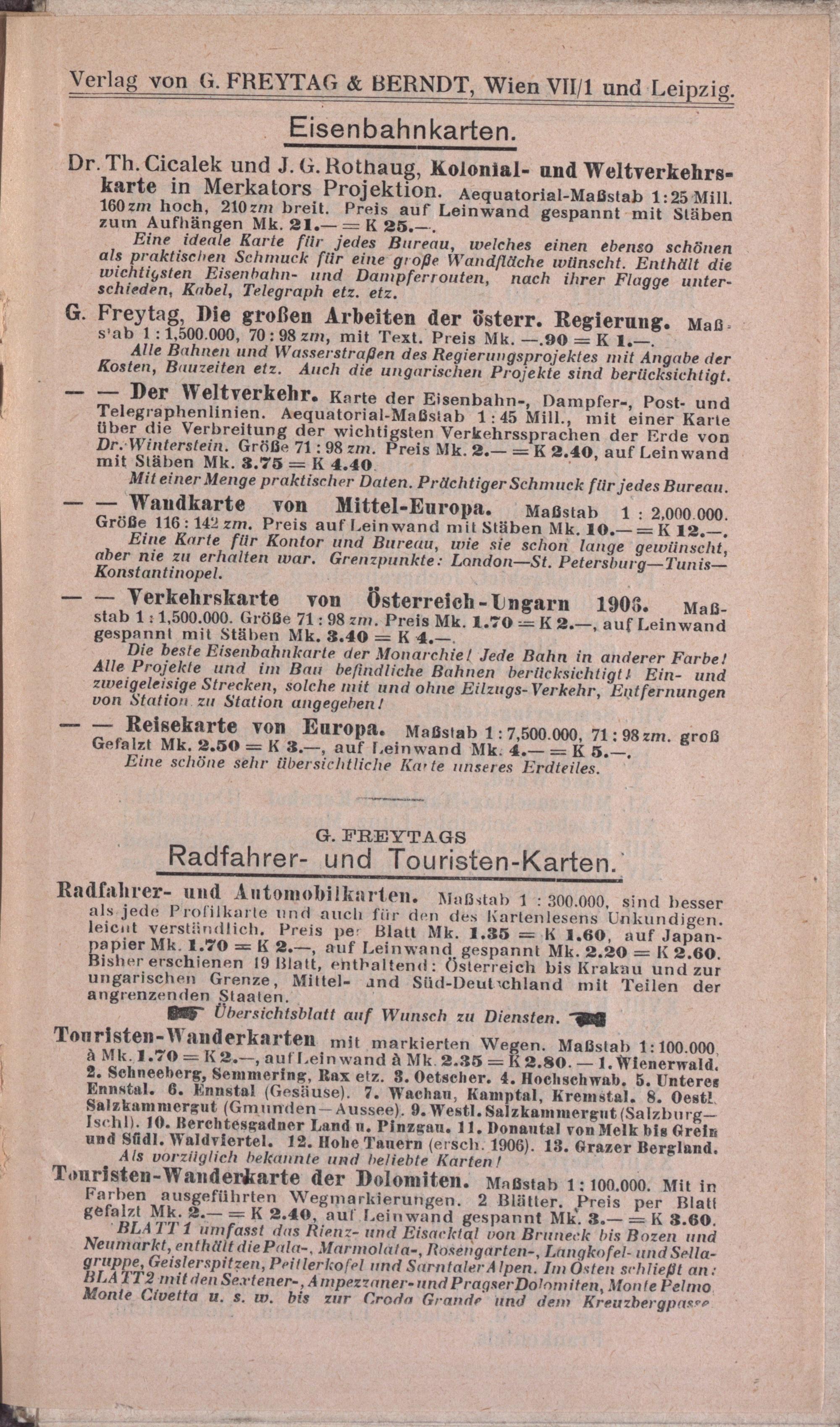 G. Freytag's Verkehrsplan der k. k. Reichshaupt- & Residenzstadt Wien