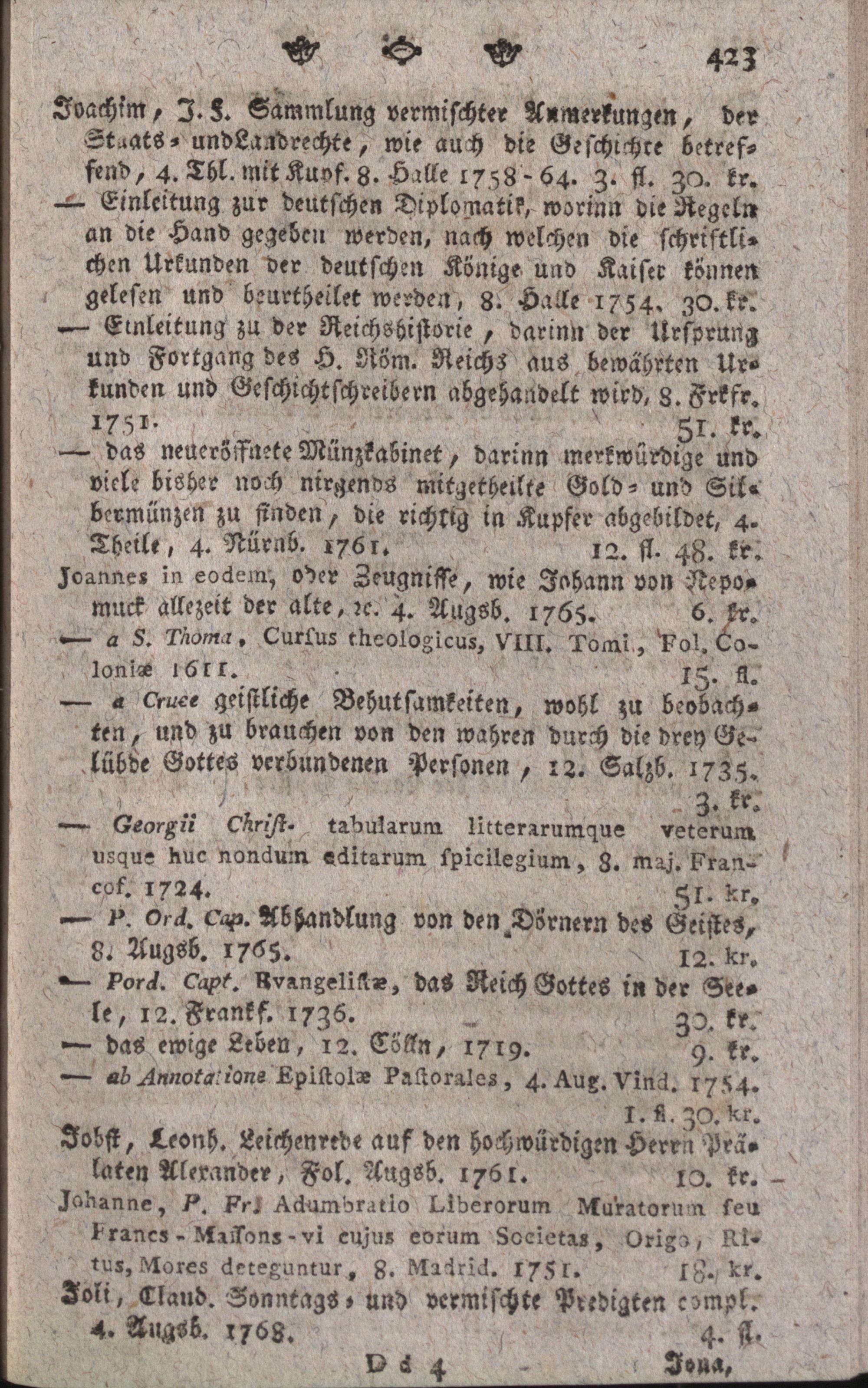Allgemeines Verzeichniß der Bücher, welche bey Johann Thomas Edlen von Trattnern, kaiserl. königl. Hofbuchdruckern und Buchhändlern, um beygesetzte sehr billige Preise in dessen Handlungen zu Wien, Prag und Innsbruck zu haben sind : = Catalogus librorum universalis omnigenae facultatis