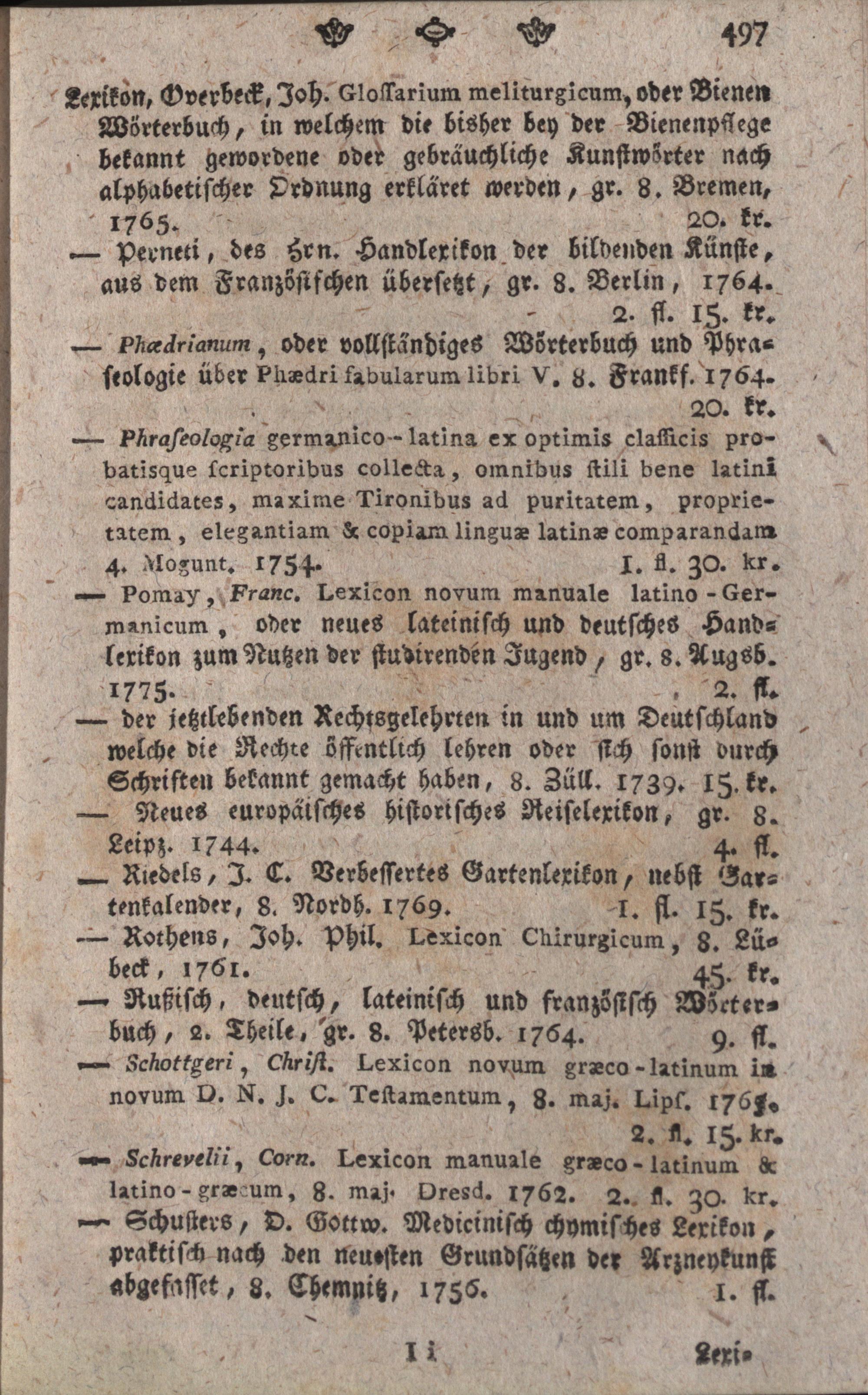 Allgemeines Verzeichniß der Bücher, welche bey Johann Thomas Edlen von Trattnern, kaiserl. königl. Hofbuchdruckern und Buchhändlern, um beygesetzte sehr billige Preise in dessen Handlungen zu Wien, Prag und Innsbruck zu haben sind : = Catalogus librorum universalis omnigenae facultatis