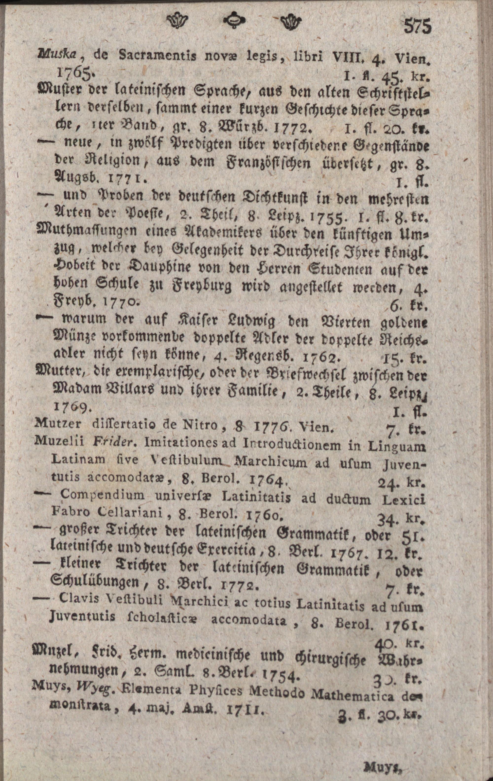 Allgemeines Verzeichniß der Bücher, welche bey Johann Thomas Edlen von Trattnern, kaiserl. königl. Hofbuchdruckern und Buchhändlern, um beygesetzte sehr billige Preise in dessen Handlungen zu Wien, Prag und Innsbruck zu haben sind : = Catalogus librorum universalis omnigenae facultatis