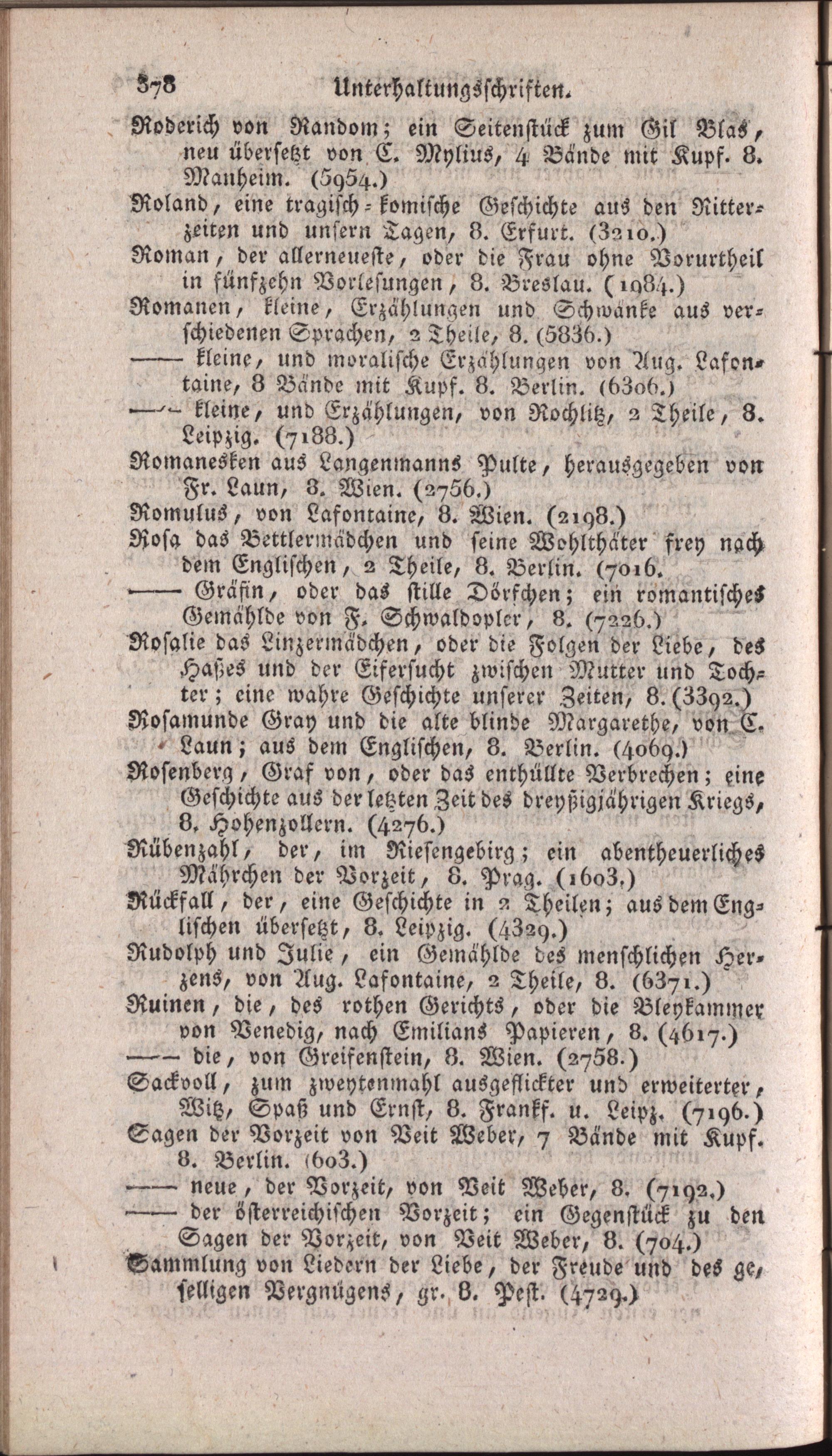 Bücherverzeichniß der öffentlichen Leihebibliothek des Joh. Georg Binz : in der Dorotheergasse im Freyherrl. Kaisersteinischen Hause, dem Klosterneuburger Gebäude gegenüber