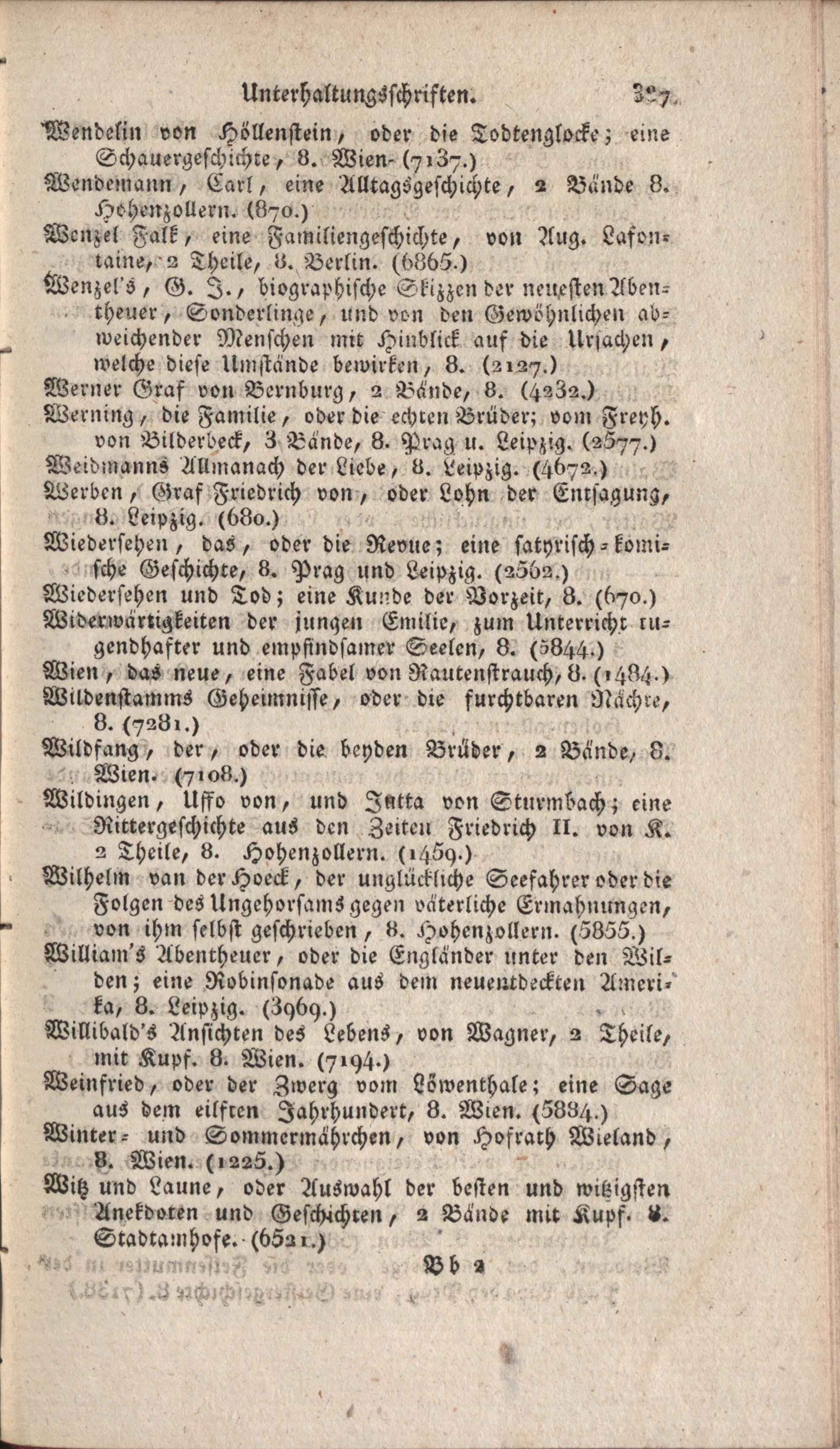 Bücherverzeichniß der öffentlichen Leihebibliothek des Joh. Georg Binz : in der Dorotheergasse im Freyherrl. Kaisersteinischen Hause, dem Klosterneuburger Gebäude gegenüber