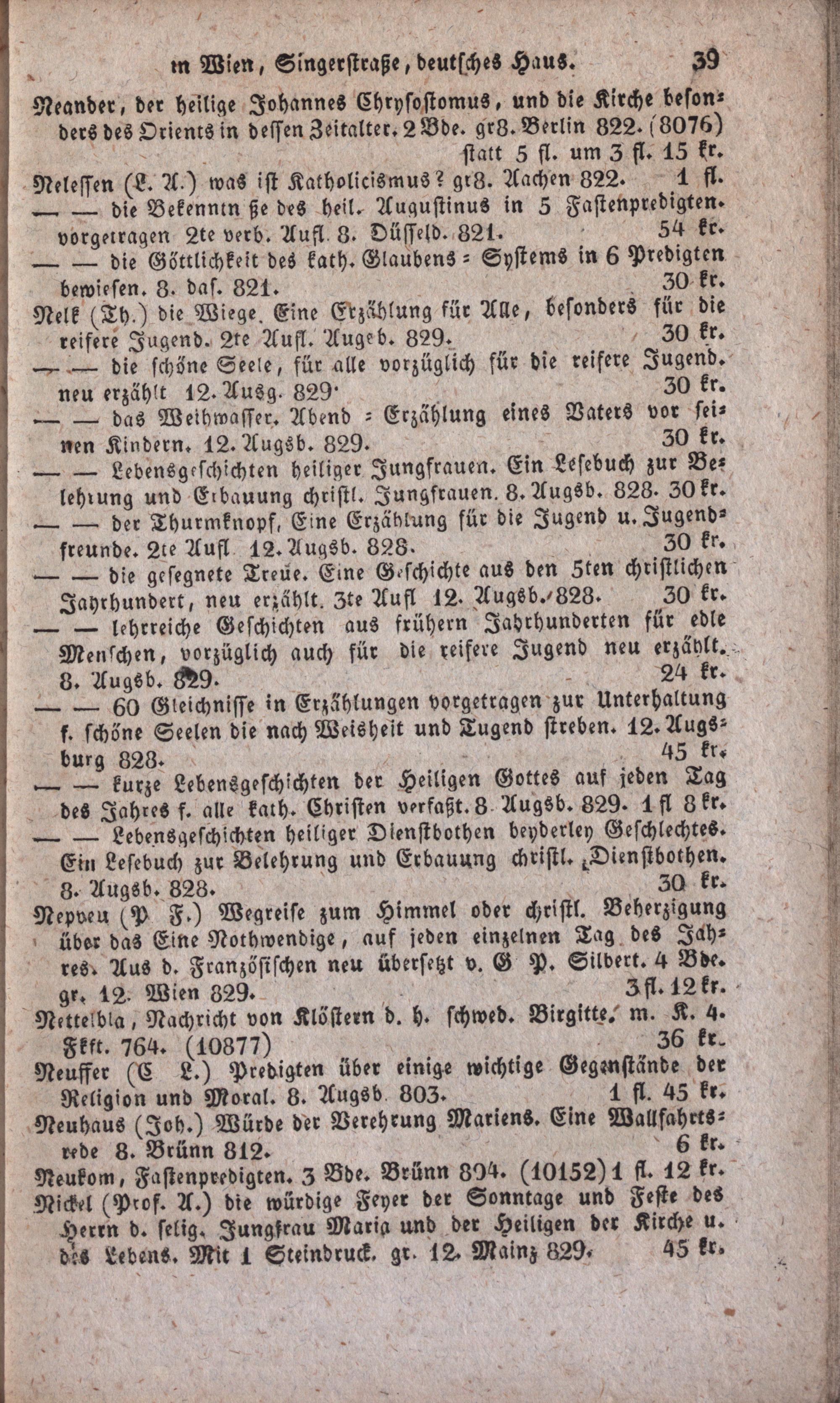 Verzeichniß theologischer Schriften älterer und neuerer Zeit bis zum Schlusse des Jahres 1829 : worunter mehrere um bedeutend herabgesetzte Preise Nebst einem Anhange von Gebeth- und Erbauungsschriften, welche in der Jacob Mayer'schen Buchhandlung (in Wien, Singerstraße, deutsches Haus an der Ecke) zu haben sind