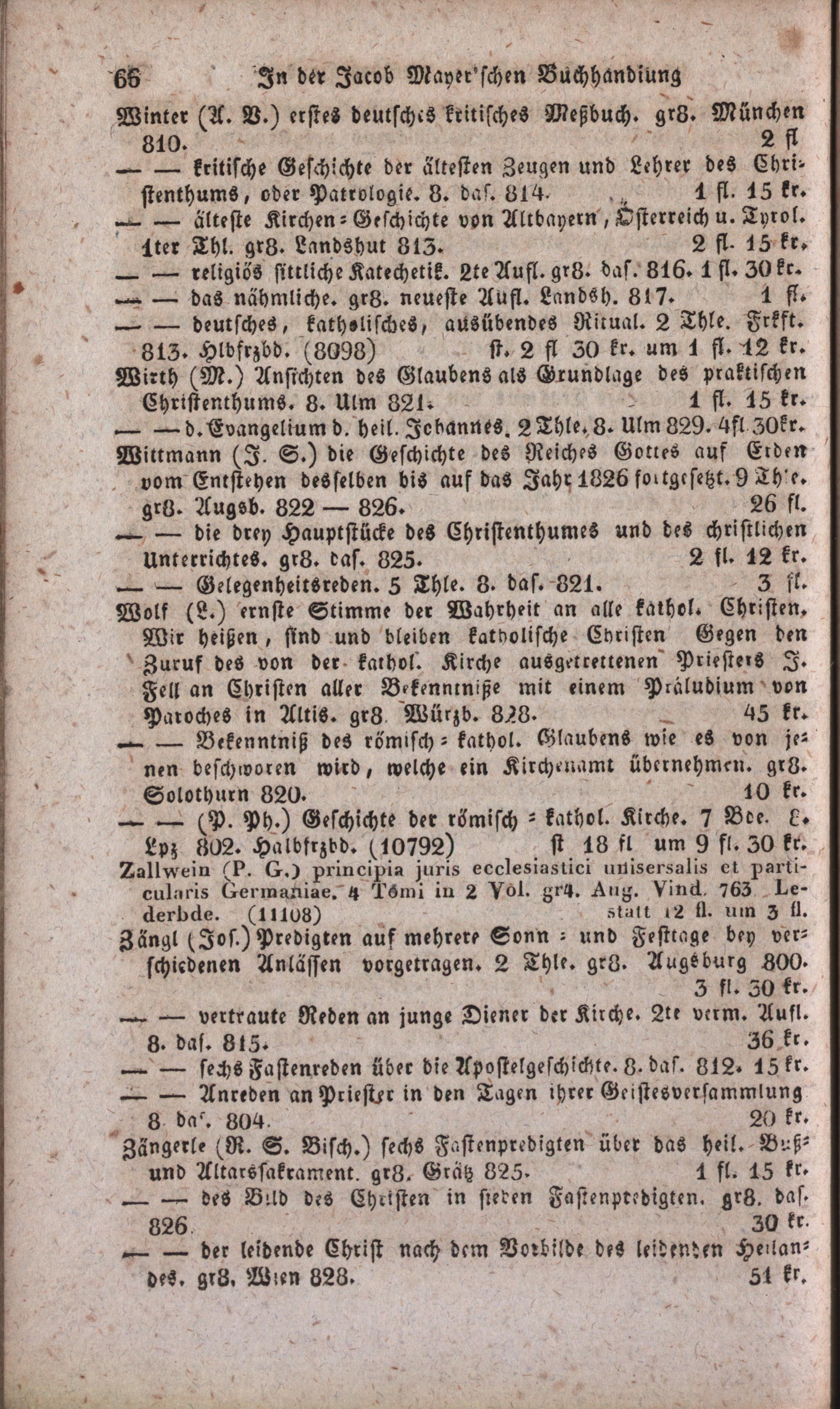 Verzeichniß theologischer Schriften älterer und neuerer Zeit bis zum Schlusse des Jahres 1829 : worunter mehrere um bedeutend herabgesetzte Preise Nebst einem Anhange von Gebeth- und Erbauungsschriften, welche in der Jacob Mayer'schen Buchhandlung (in Wien, Singerstraße, deutsches Haus an der Ecke) zu haben sind