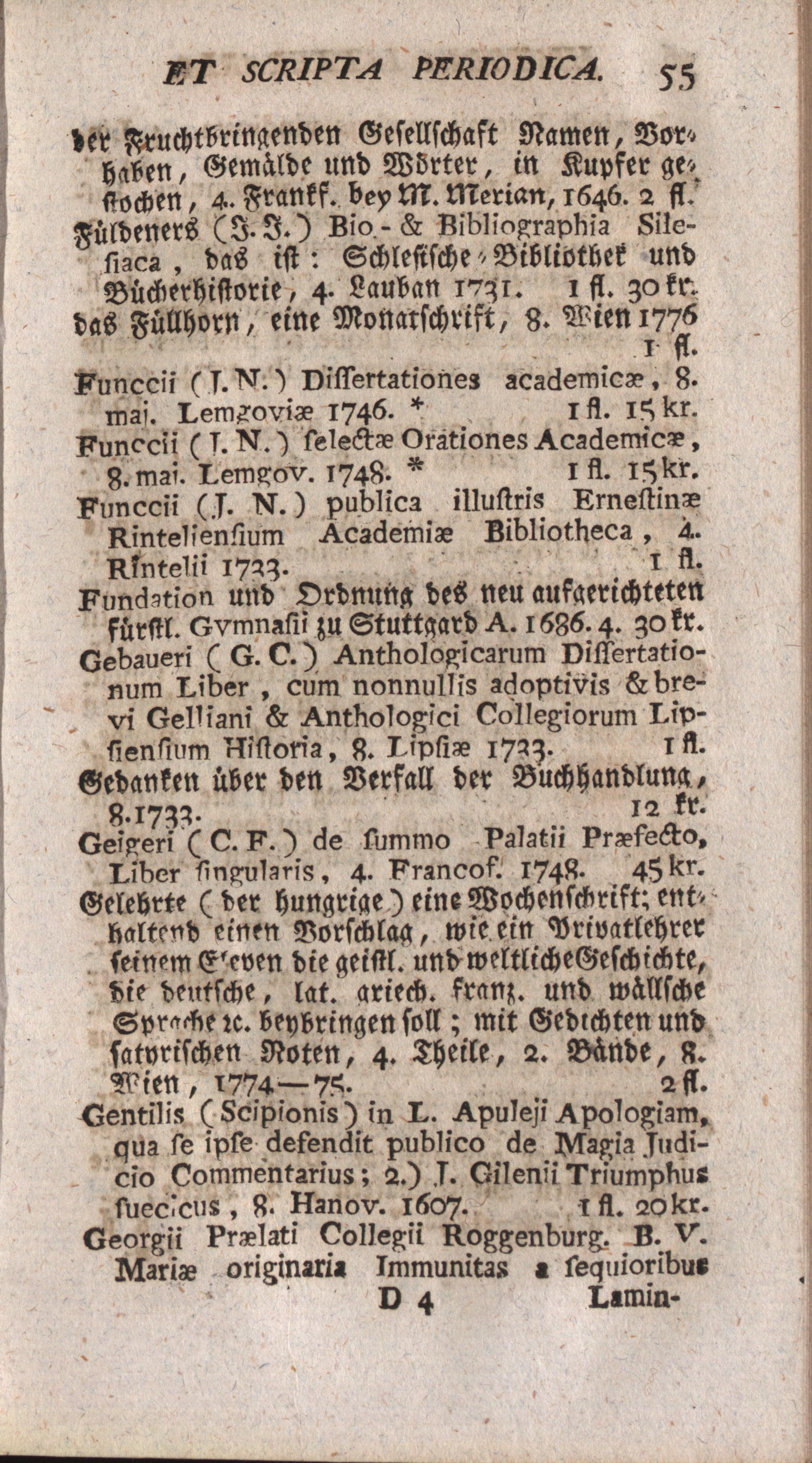 1 (1780) Systematisches Verzeichniß deutsch- und lateinischer meistentheils gebundener Bücher, welche bey August Gräffer k.k. privilegirten Buchhändlern, zu haben sind
