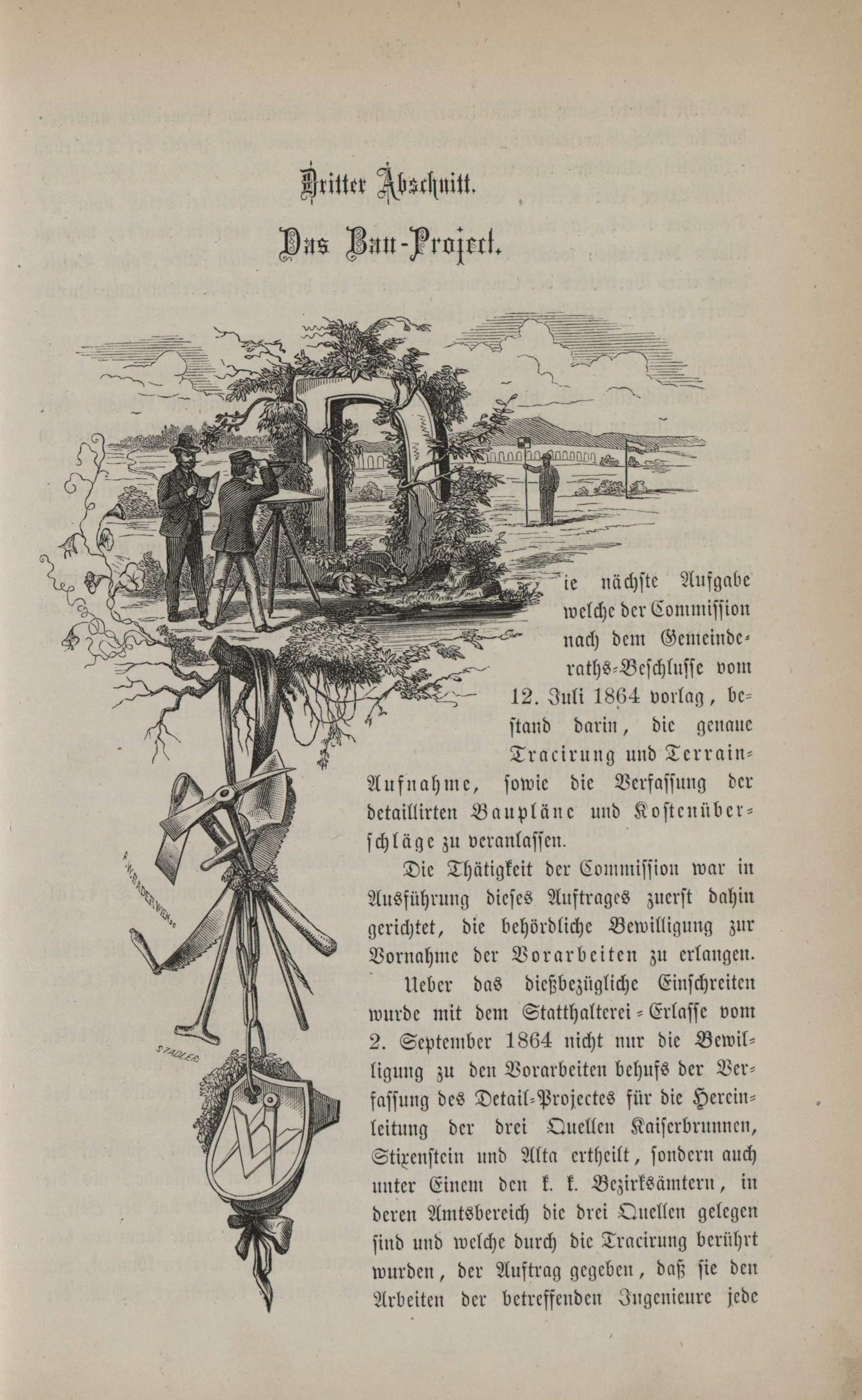 Die Wasserversorgung der Stadt Wien in ihrer Vergangenheit und Gegenwart : Denkschrift zur Eröffnung der Hochquellen-Wasserleitung im Jahre 1873 ; nach amtlichen Daten bearbeitet / von Rudolf Stadler