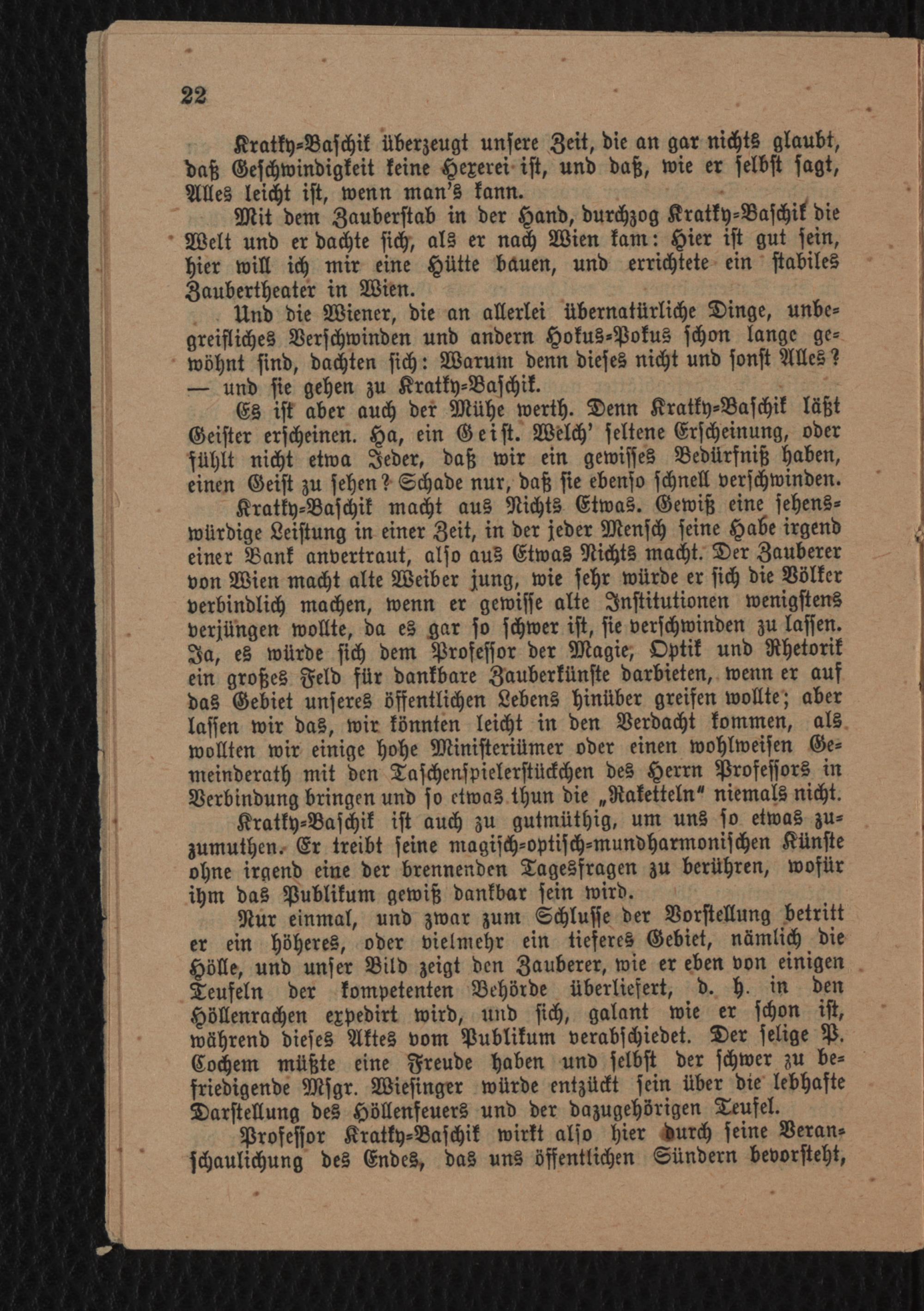 Haupt-Programm für Professor Kratky-Baschik's großartiges Zauber-Theater : Täglich Vorstellung amusanter Physik, Magie, Musik und Optik nebst interessanten Gespenster- und Geistererscheinungen