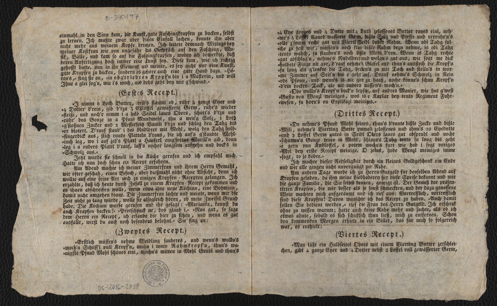 Berühmte Krapfen-Recepte und die Heirath durch Krapfen / Herausgegeben von Corbinianus Fasching