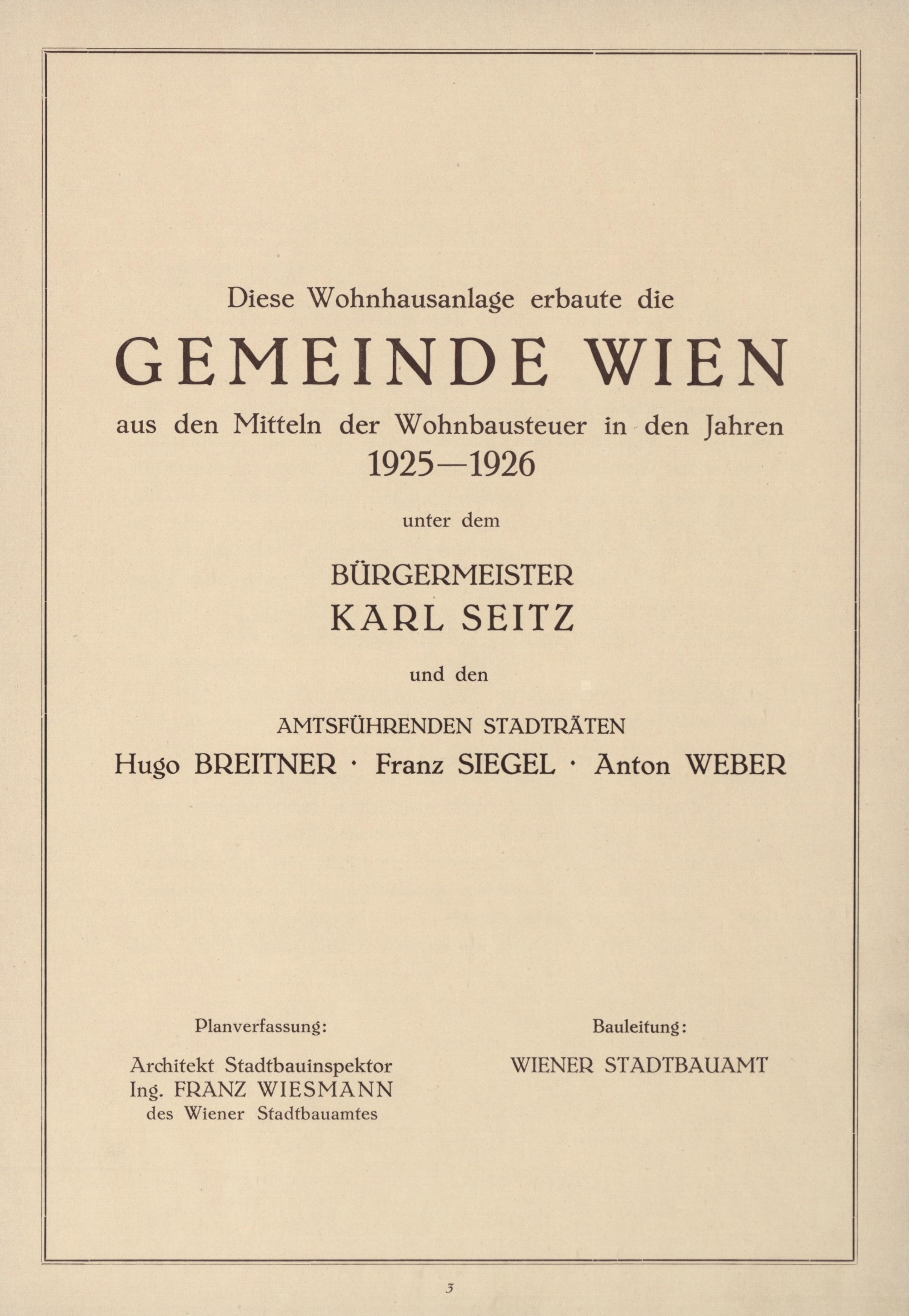 Die Wohnhausanlage der Gemeinde Wien im XI. Bezirk Drischützgasse, Ehamgasse, Greifgasse, Herbortgasse / [Planverfassung: Franz Wiesmann]