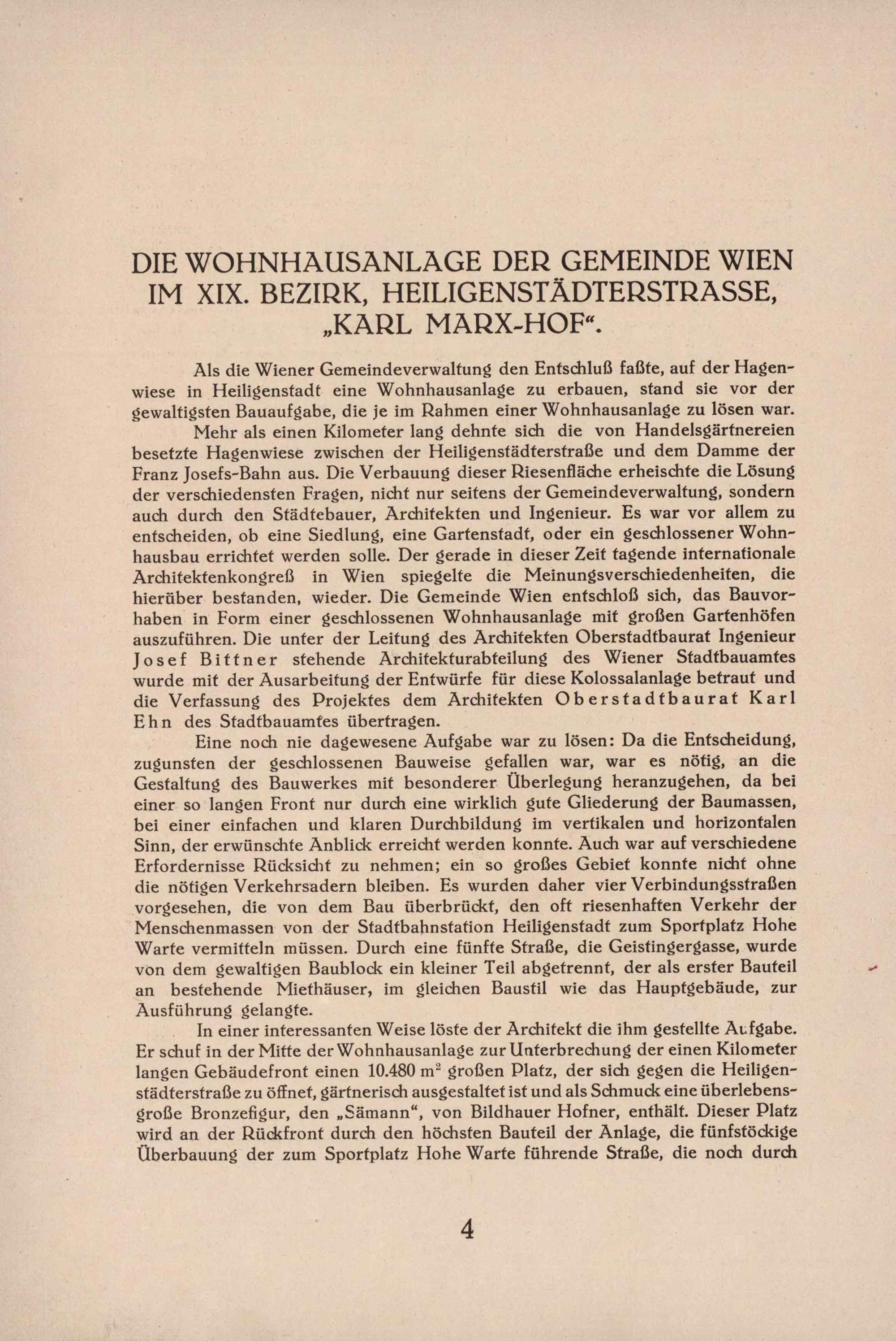Der Karl Marx-Hof : die Wohnhausanlage der Gemeinde Wien auf der Hagenwiese in Heiligenstadt