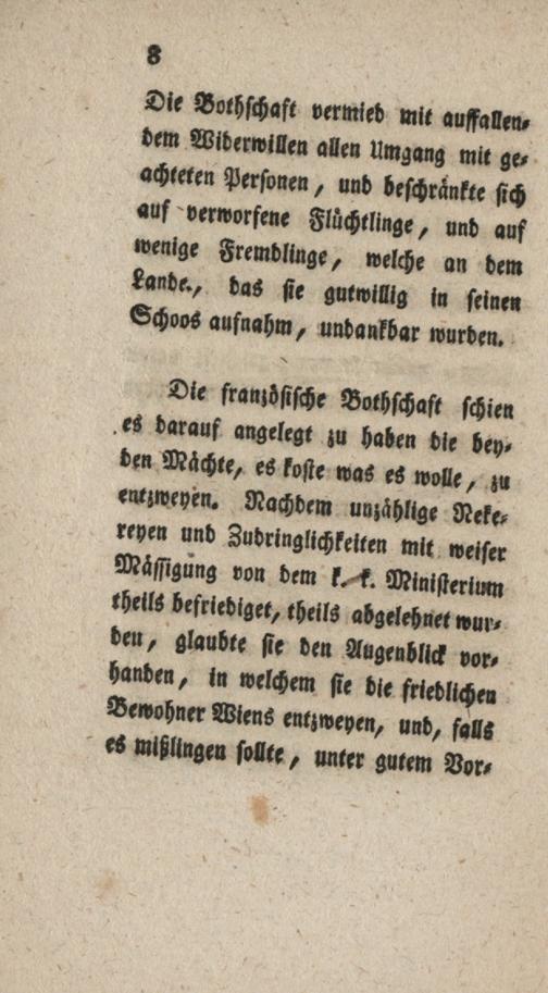 Getreue Darstellung des Auflaufes welchen die französische Bothschaft durch Aushängung einer dreyfärbigen Fahne den 13. Aprill 1798 in Wien veranlasset hat / von einem Augenzeugen [i.e. Franz Joseph von Saurau]
