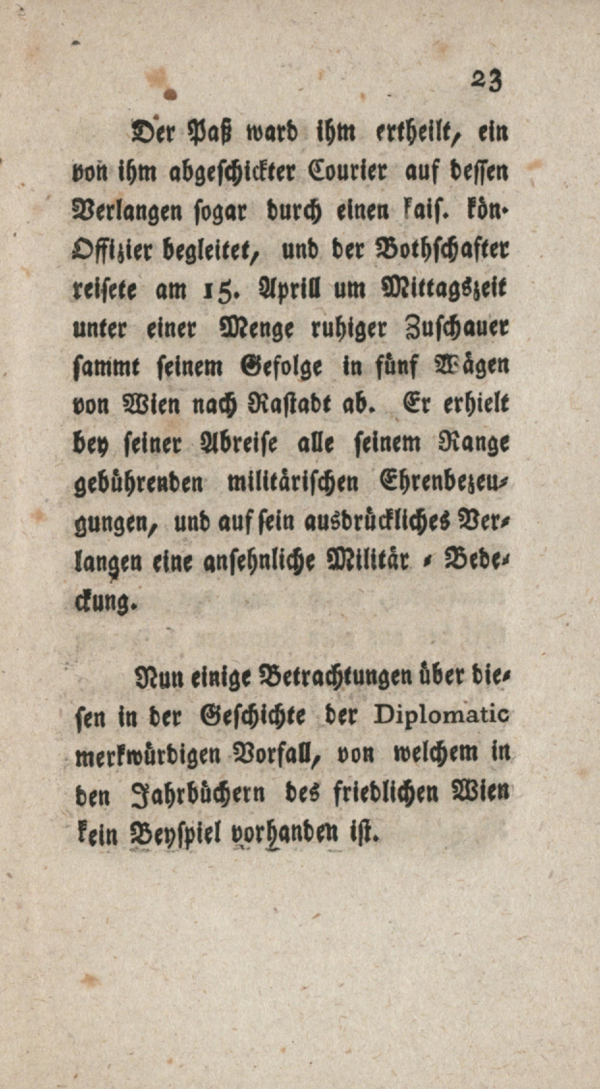 Getreue Darstellung des Auflaufes welchen die französische Bothschaft durch Aushängung einer dreyfärbigen Fahne den 13. Aprill 1798 in Wien veranlasset hat / von einem Augenzeugen [i.e. Franz Joseph von Saurau]