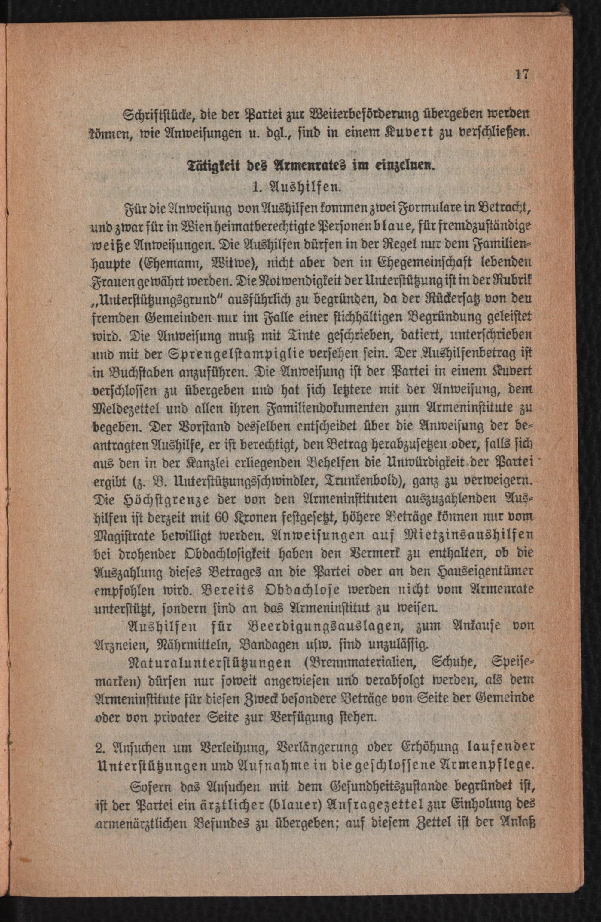 Anleitung für die Geschäftsführung der Armenräte der Stadt Wien
