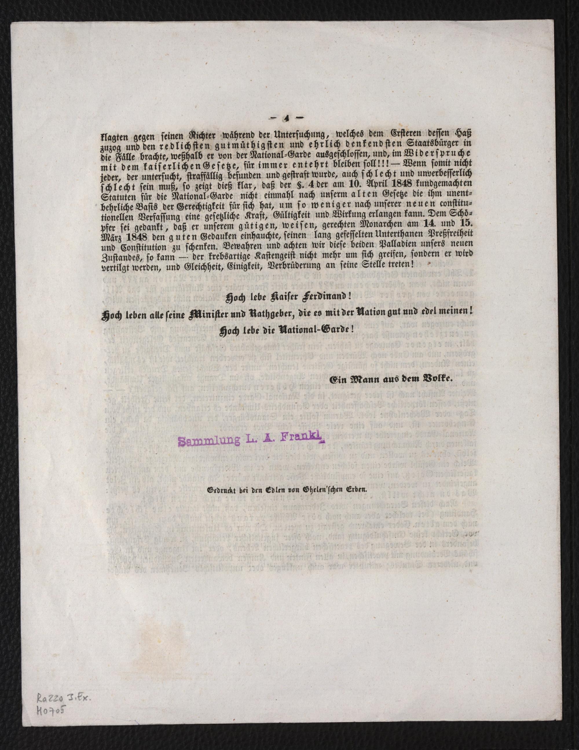 Das Neueste welches zu wissen nothwendig ist : Am 10. April, ist hier eine Bekanntmachung des Oberkommandanten der National-Garde erschienen, welche Grundregeln in Betreff der Erfordernisse zur Einreihung in dieses ehrenwerthe Corps enthält ... / [Ein Mann aus dem Volke]