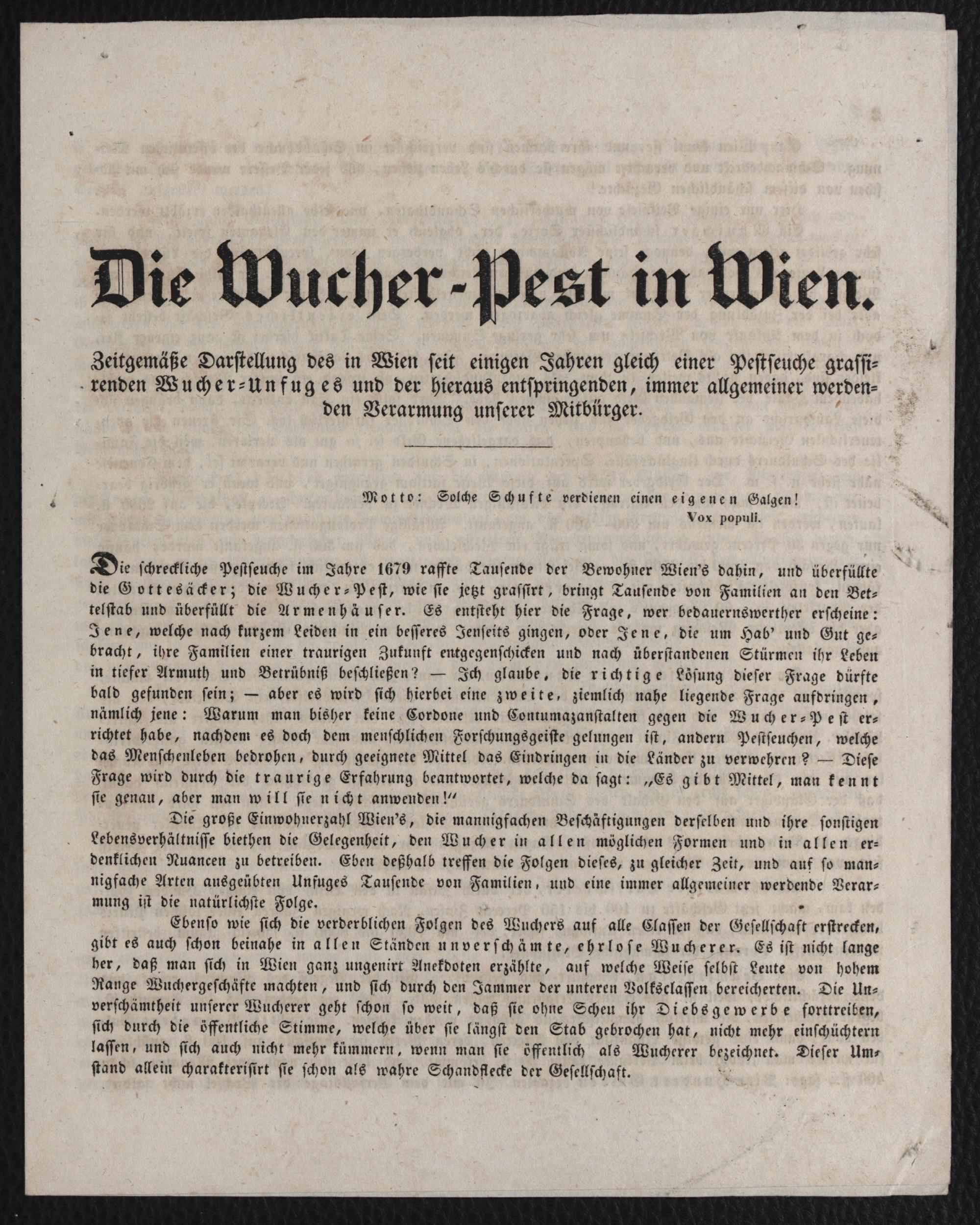 Die Wucher-Pest in Wien / Adolph Carl Naske