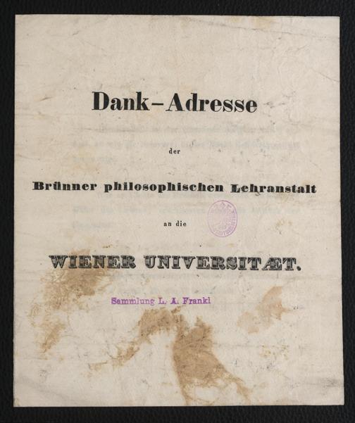 Dank-Adresse der Brünner philosophischen Lehranstalt an die Wiener Universität
