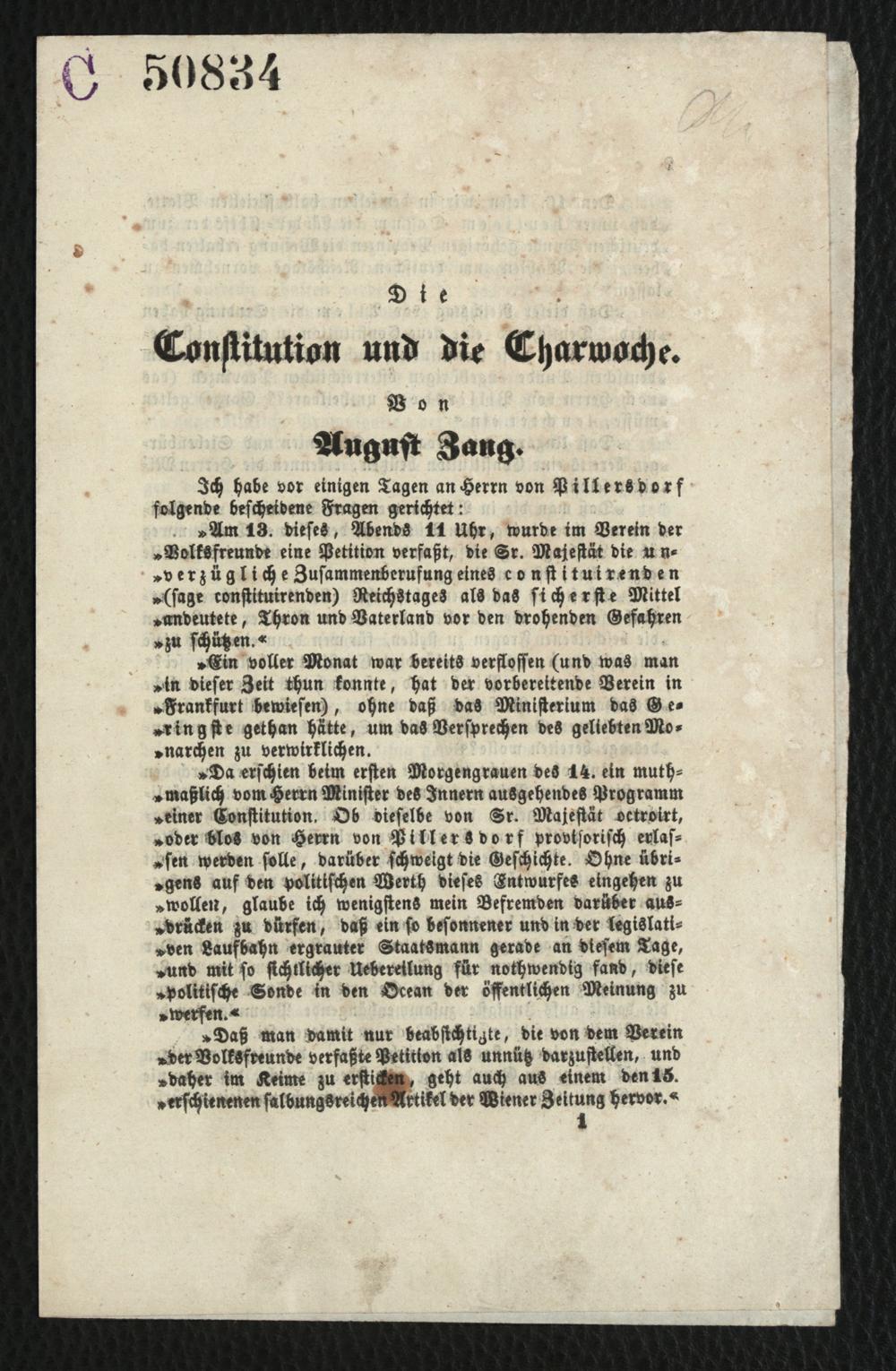 Die Constitution und die Charwoche / Von August Zang