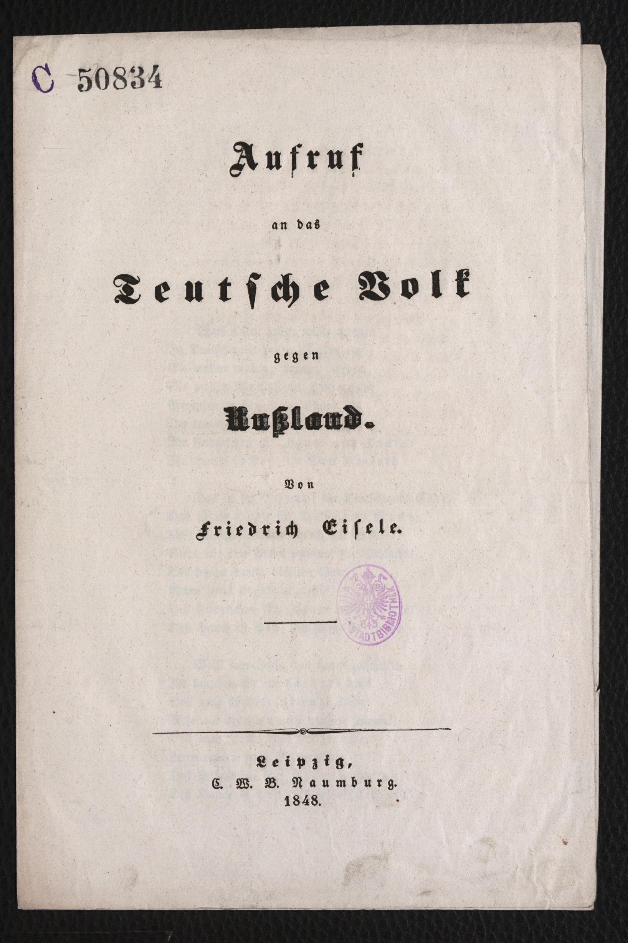 Aufruf an das Teutsche Volk gegen Rußland / Friedrich Eisele
