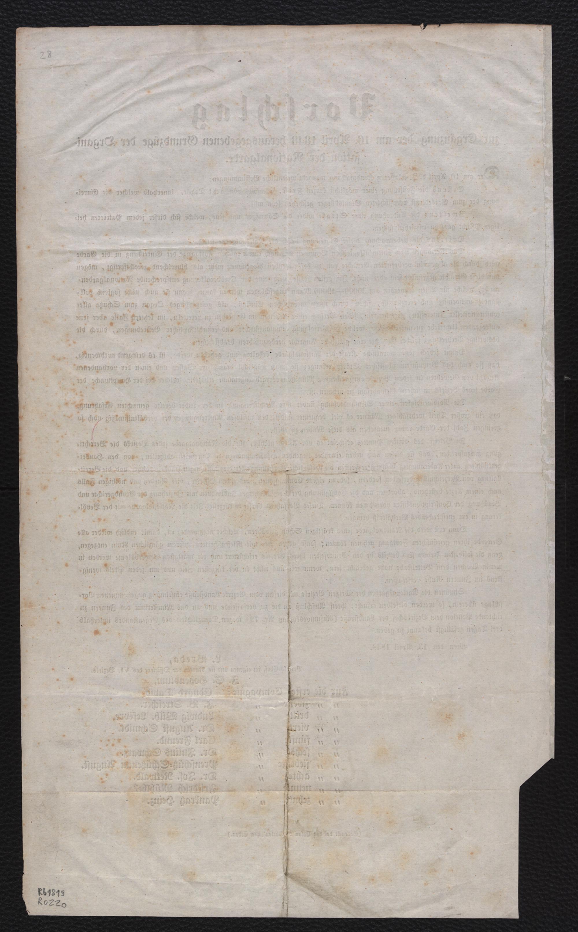 Vorschlag zur Ergänzung der am 10. April 1848 herausgegebenen Grundzüge der Organisation der Nationalgarde : Der am 10. April d. J. erlassenen Kundmachung mangeln wesentliche Bestimmungen: ... ; Wien, den 13. April 1848 / L. Breda, Bezirks-Chef, im eigenen und im Namen der Officiere des VI. Bezirks. J. S. Hohenblum ...