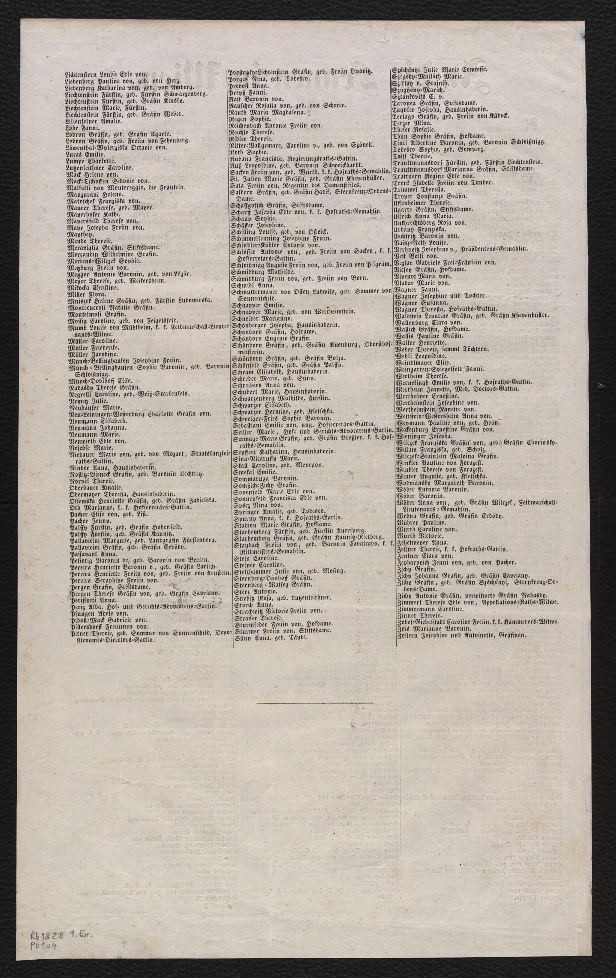 An die Frauen in Wien : Nicht allein dem in der Wiener-Zeitung vom 15. April an uns ergangenen Aufrufe, sondern noch mehr der Stimme des Herzens folgend ..., erlauben sich die Unterzeichneten, die Frauen aller Stände hierdurch aufzufordern: "von jetzt an keine Stoffe ausländischer Fabrikation mehr zu kaufen, sondern von der inländischen Industrie ihren derartigen Bedarf zu nehmen." ... ; Wien, den 17. April 1848 / Gräfin Hunyady, geb. Fürstin Liechtenstein. Fürstin Esterházy, geb. Prinzessin v. Taxis. Fürstin Leopoldine Lobkowitz, geborne Fürstin Liechtenstein ...