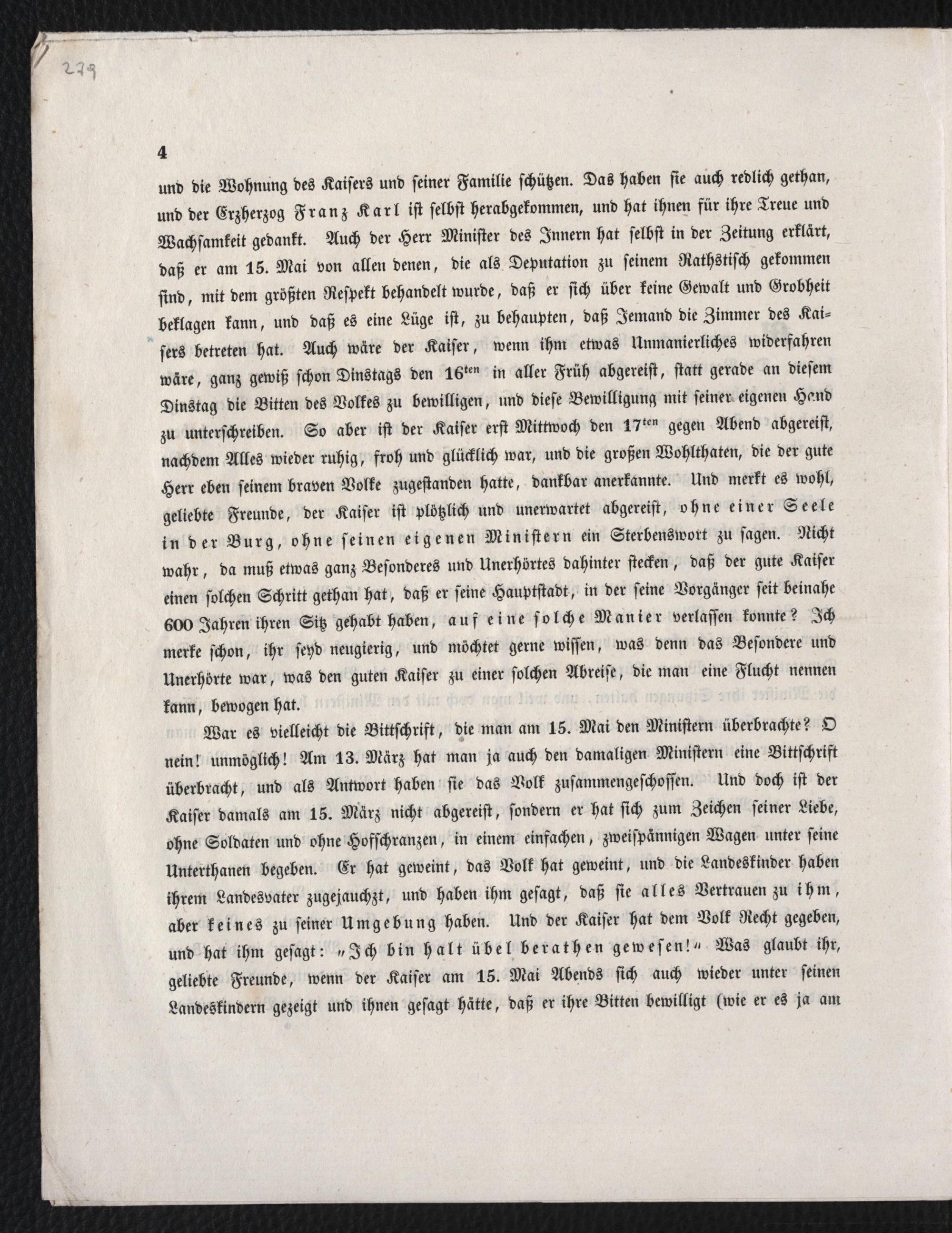 Was am 15. Mai in Wien geschehen ist, und warum der Kaiser am 17. Mai seine Hauptstadt verlassen hat : [Wien, den 24. Mai 1848] / Viele Volks- und Bauernfreunde