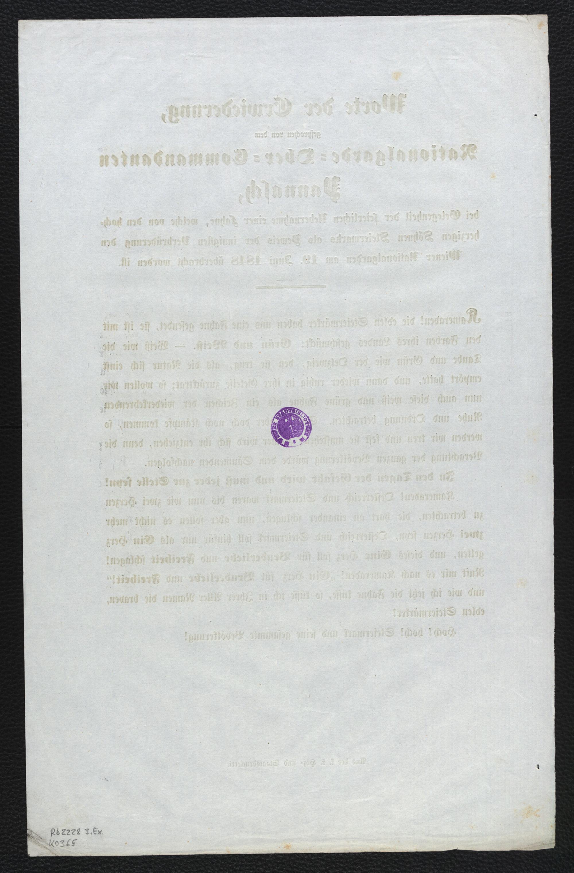 Worte der Erwiederung, gesprochen von dem Nationalgarde-Ober-Commandanten Pannasch, bei Gelegenheit der feierlichen Uebernahme einer Fahne, welche von den hochherzigen Söhnen Steiermarks als Beweis der innigsten Verbrüderung den Wiener Nationalgarden am 19. Juni 1848 überbracht worden ist