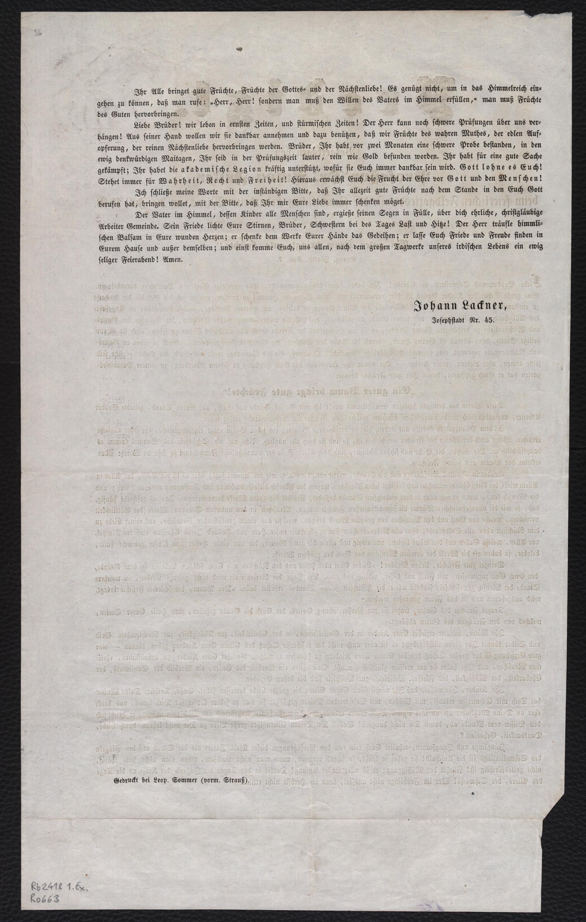 Predigt. Vorgetragen von Professor Dr. Anton Füster beim feierlichen Feldgottesdienste der sämmtlichen Erdarbeiter Wiens am 30. Juli 1848 / [Johann Lackner, Josephstadt Nr. 45]