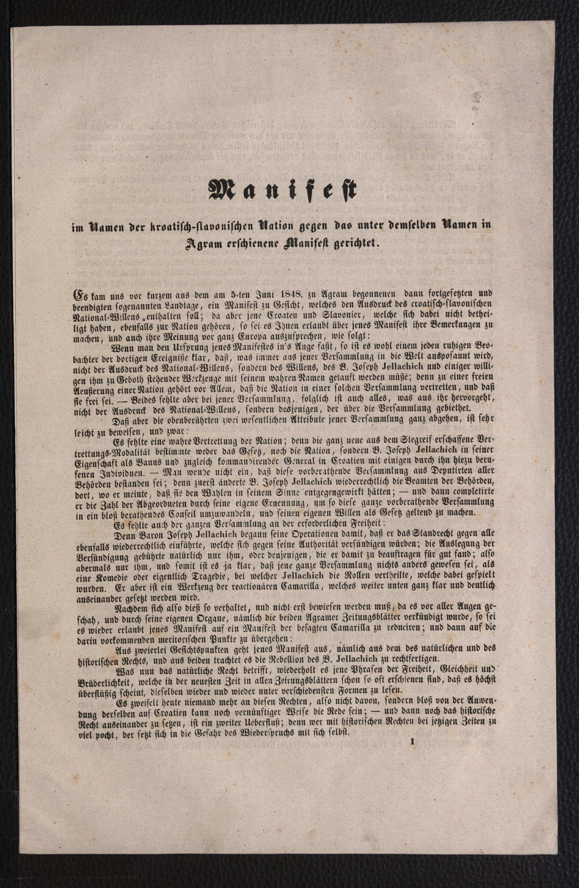 Manifest im Namen der kroatisch-slavonischen Nation gegen das unter demselben Namen in Agram erschienene Manifest gerichtet : [Im August 1848]