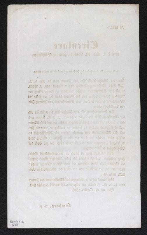 Circulare vom k. k. nied. öst. Landesregierungs-Präsidium : Verlängerung bei der Steierfreiheit [!] bei Häuserbauten innerhalb der Linien Wiens. Wien am 21. October 1848. / Lamberg, m. p.