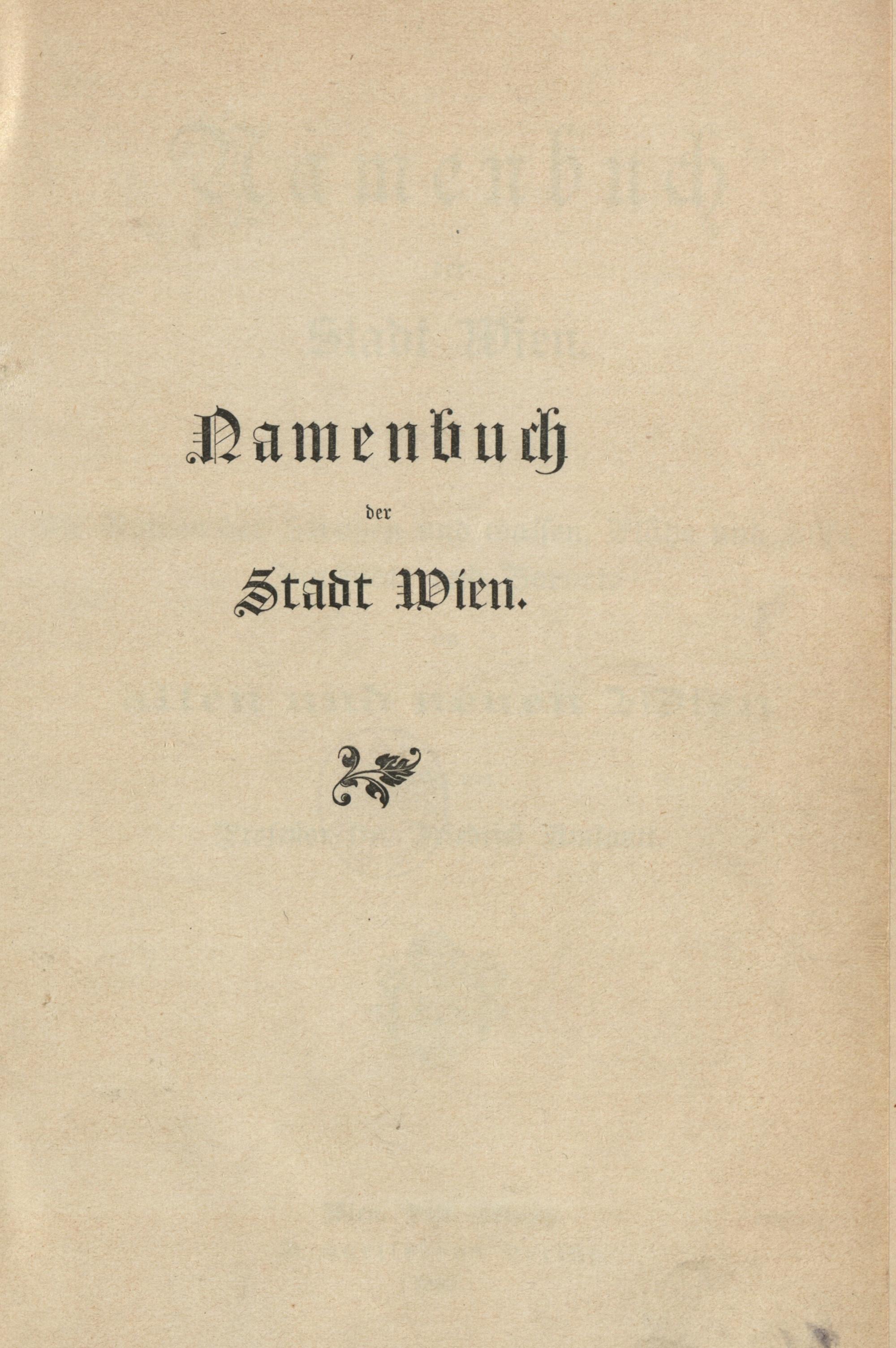 Namenbuch der Stadt Wien : die Namen der Straßen und Gassen, Plätze und Höfe, Vorstädte und Vororte im alten und neuen Wien / erklärt von Professor Dr. Friedrich Umlauft