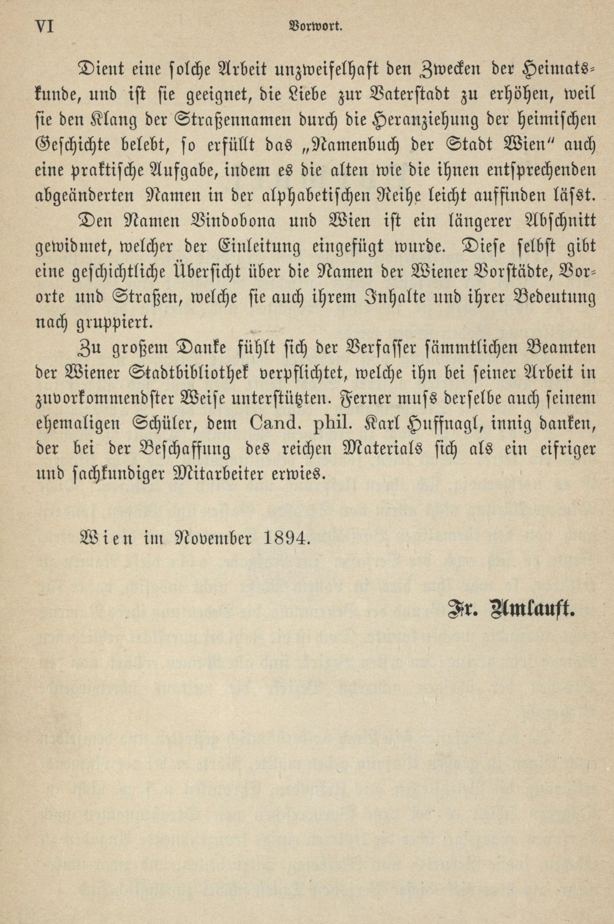 Namenbuch der Stadt Wien : die Namen der Straßen und Gassen, Plätze und Höfe, Vorstädte und Vororte im alten und neuen Wien / erklärt von Professor Dr. Friedrich Umlauft