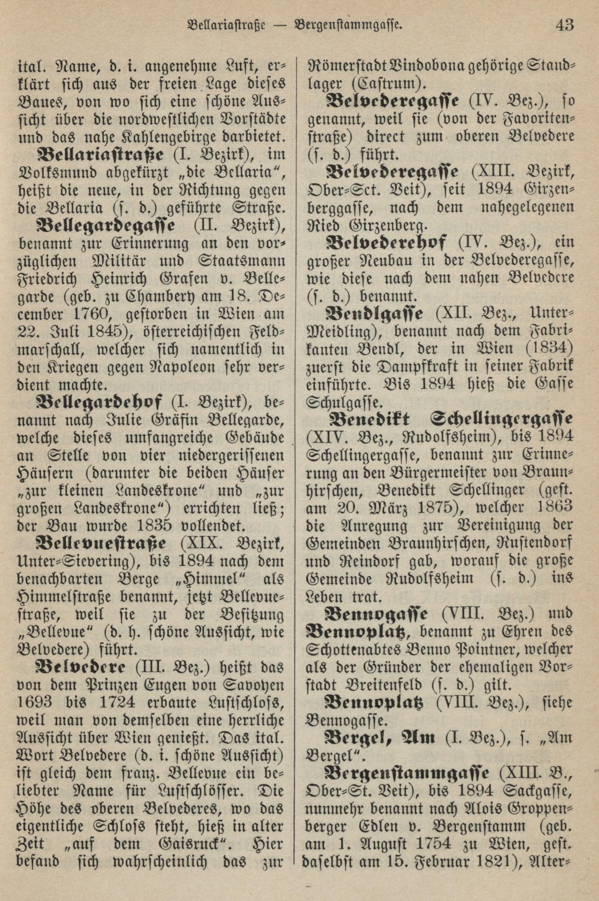 Namenbuch der Stadt Wien : die Namen der Straßen und Gassen, Plätze und Höfe, Vorstädte und Vororte im alten und neuen Wien / erklärt von Professor Dr. Friedrich Umlauft