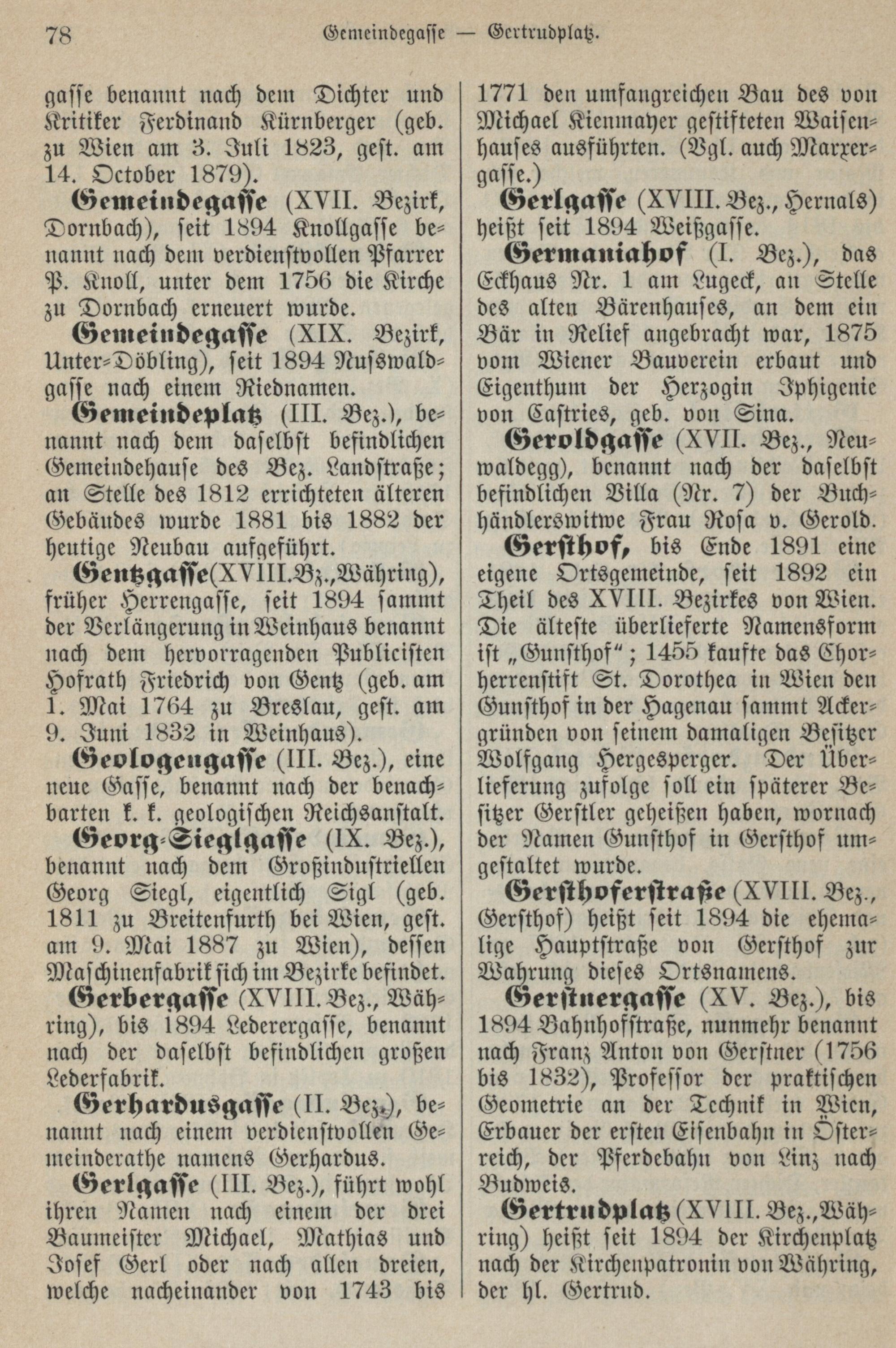 Namenbuch der Stadt Wien : die Namen der Straßen und Gassen, Plätze und Höfe, Vorstädte und Vororte im alten und neuen Wien / erklärt von Professor Dr. Friedrich Umlauft