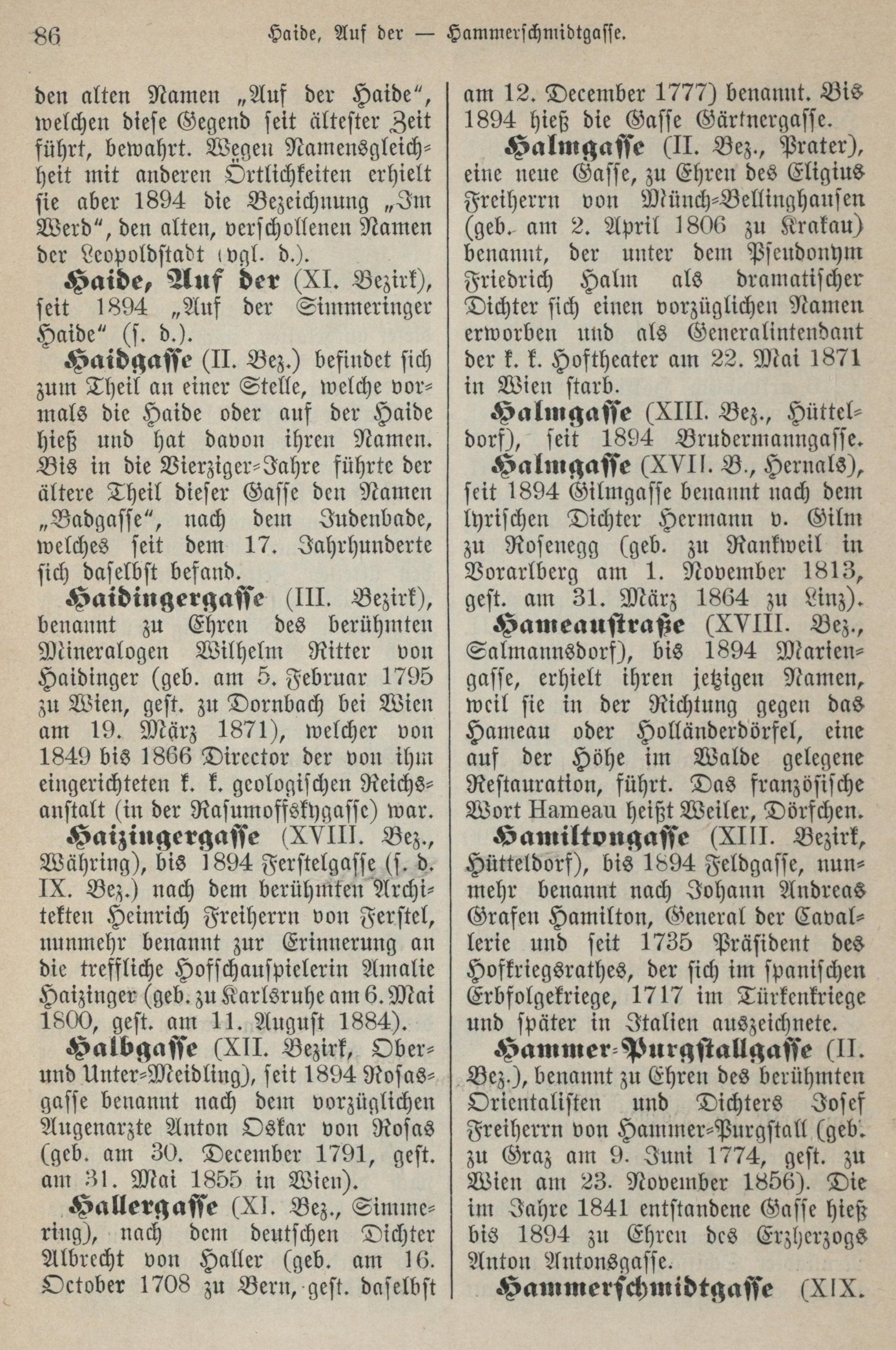 Namenbuch der Stadt Wien : die Namen der Straßen und Gassen, Plätze und Höfe, Vorstädte und Vororte im alten und neuen Wien / erklärt von Professor Dr. Friedrich Umlauft
