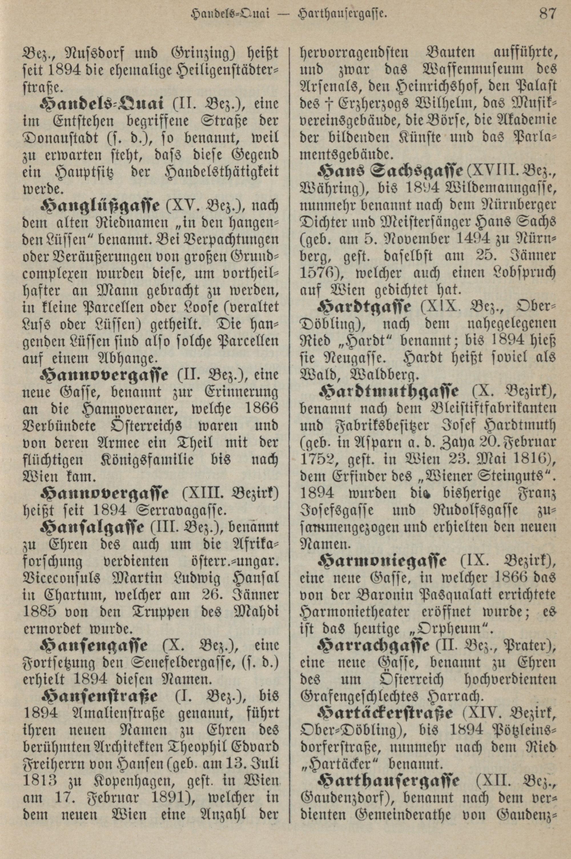 Namenbuch der Stadt Wien : die Namen der Straßen und Gassen, Plätze und Höfe, Vorstädte und Vororte im alten und neuen Wien / erklärt von Professor Dr. Friedrich Umlauft