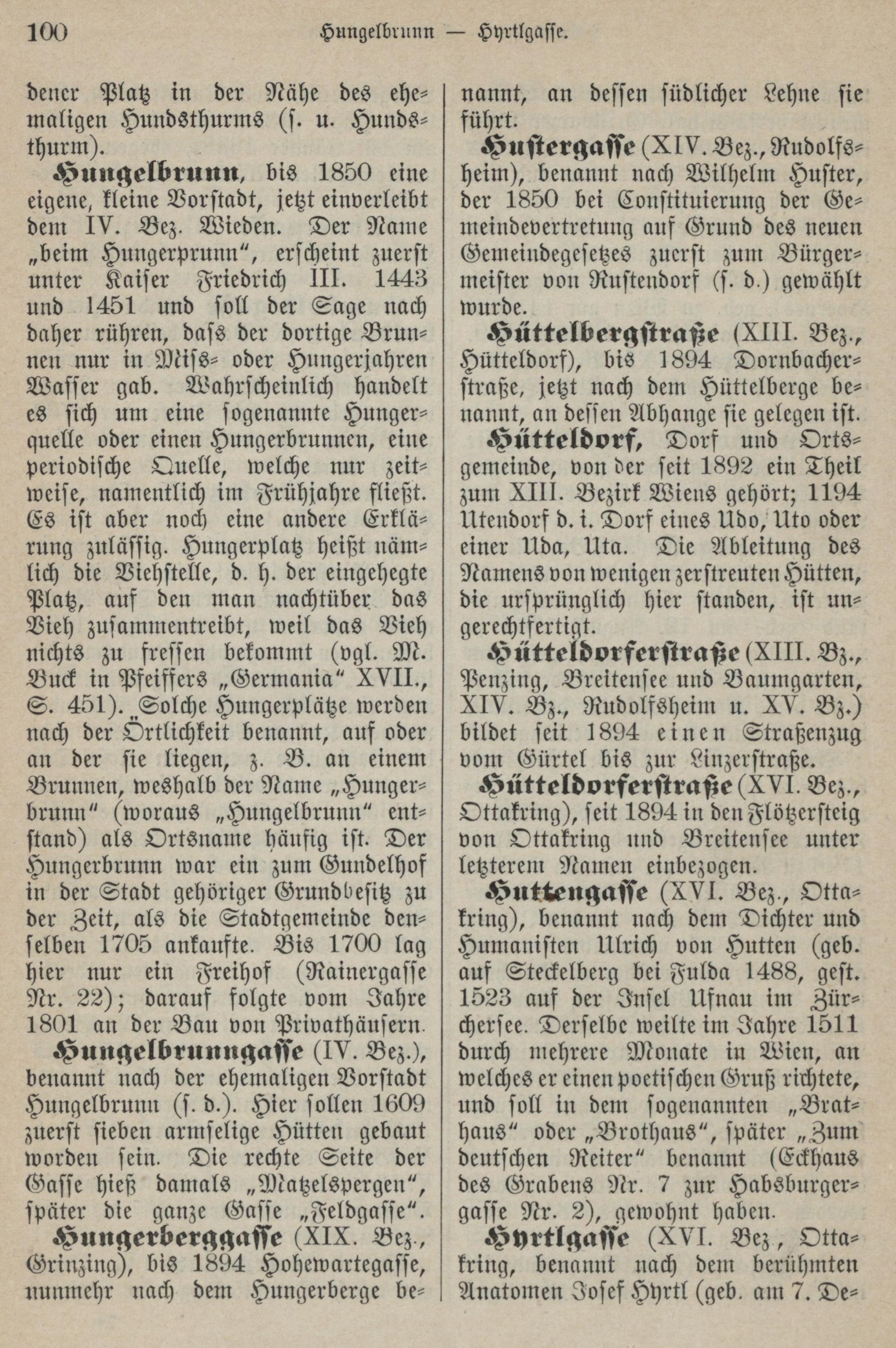 Namenbuch der Stadt Wien : die Namen der Straßen und Gassen, Plätze und Höfe, Vorstädte und Vororte im alten und neuen Wien / erklärt von Professor Dr. Friedrich Umlauft