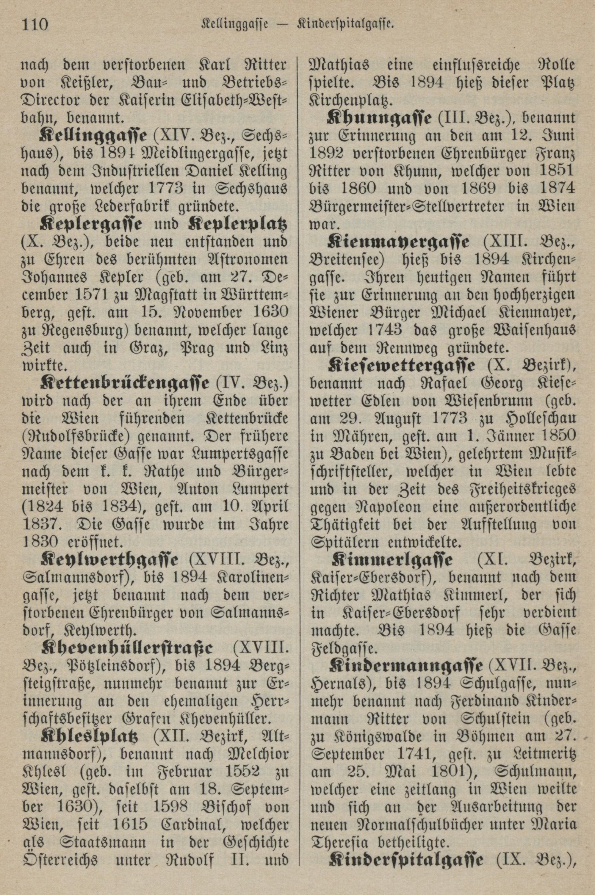 Namenbuch der Stadt Wien : die Namen der Straßen und Gassen, Plätze und Höfe, Vorstädte und Vororte im alten und neuen Wien / erklärt von Professor Dr. Friedrich Umlauft