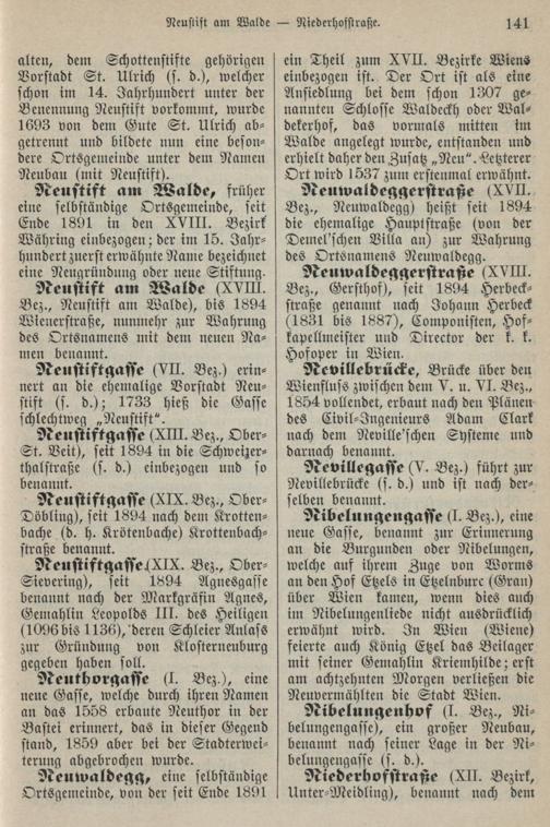 Namenbuch der Stadt Wien : die Namen der Straßen und Gassen, Plätze und Höfe, Vorstädte und Vororte im alten und neuen Wien / erklärt von Professor Dr. Friedrich Umlauft