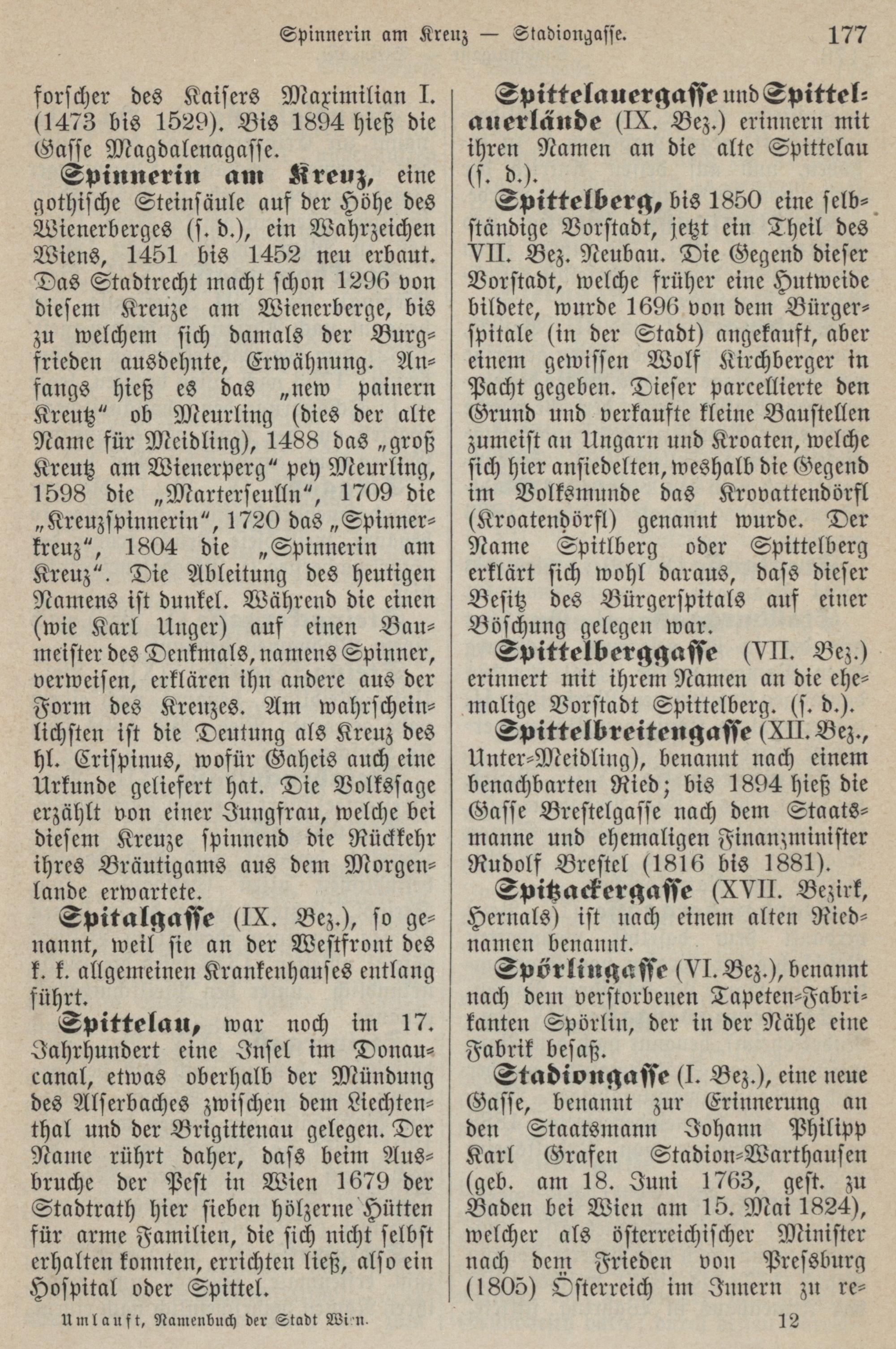 Namenbuch der Stadt Wien : die Namen der Straßen und Gassen, Plätze und Höfe, Vorstädte und Vororte im alten und neuen Wien / erklärt von Professor Dr. Friedrich Umlauft